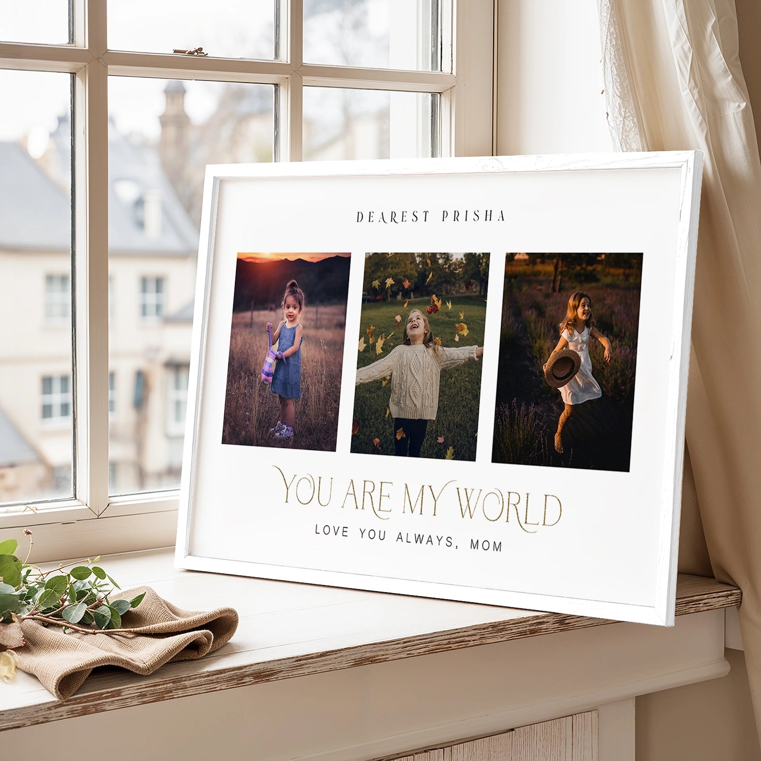 Add a personal touch by sharing your name and message to be printed alongside the images, creating a heartfelt and meaningful composition. Whether it's a gift for a loved one or a unique addition to your home decor, our artwork captures the essence of your memories in a sophisticated and refined manner.