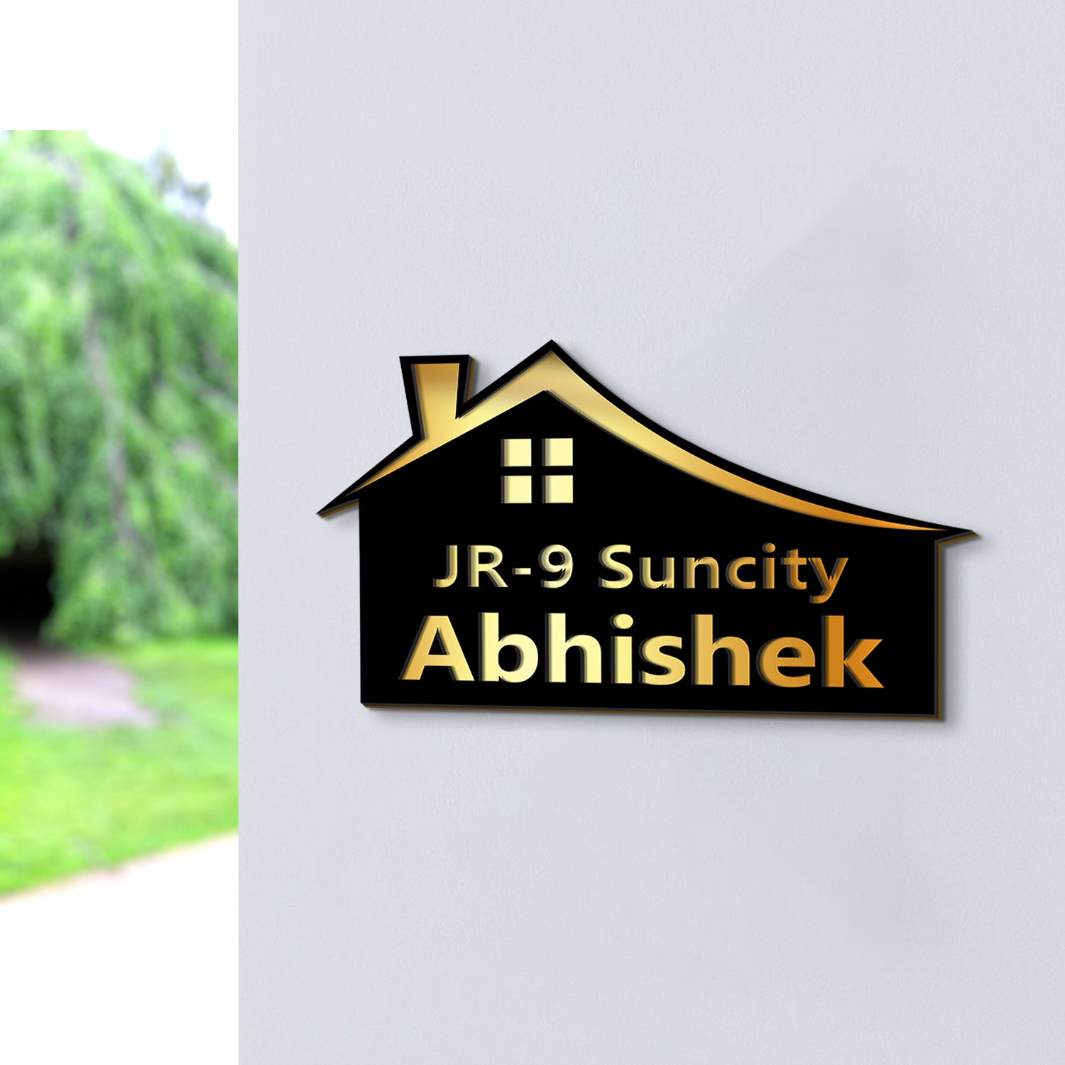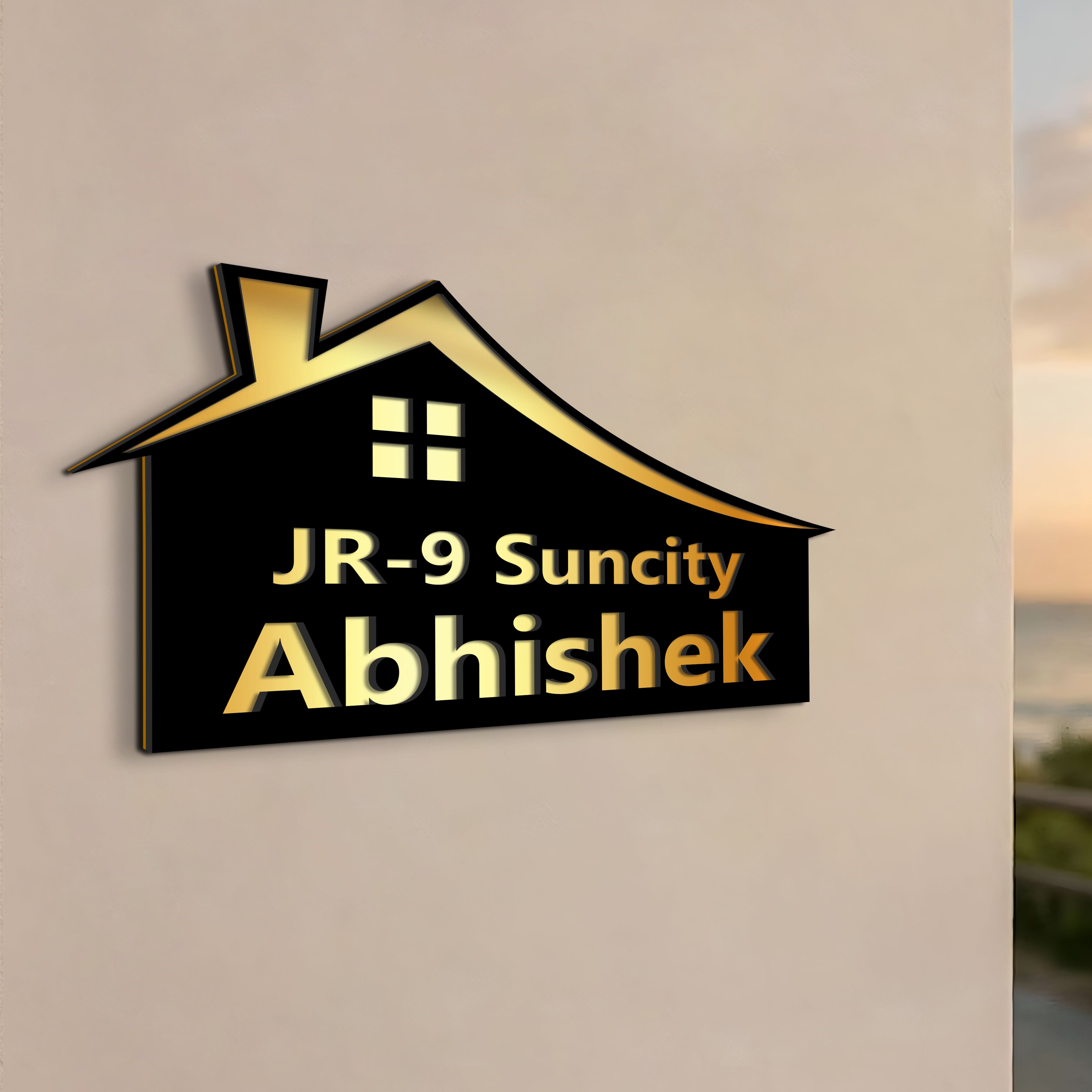 Custom House Name Plate – Golden Engraved Acrylic (3D Look)
