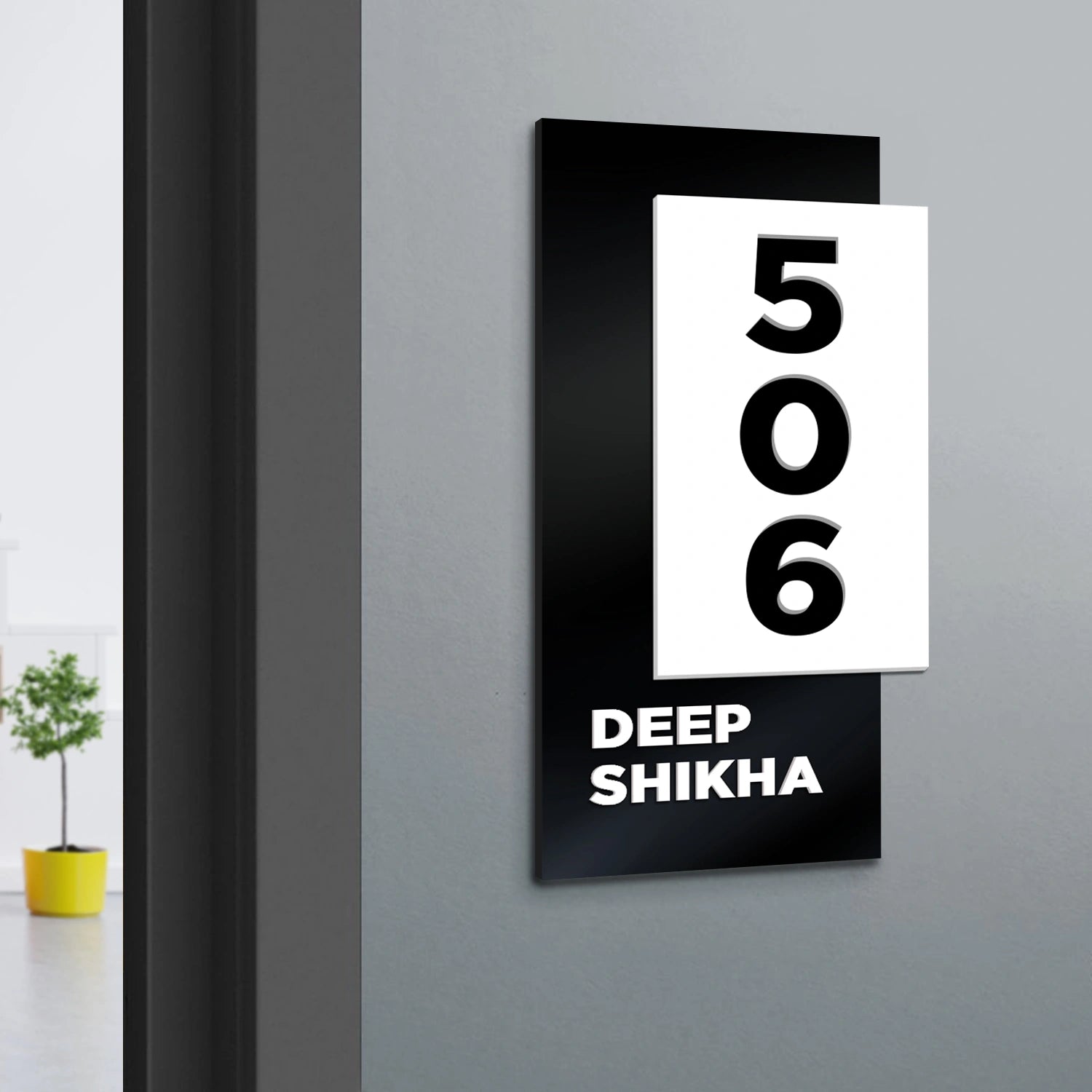 3D Acrylic Name Plate | Black Base with White 3D Letters