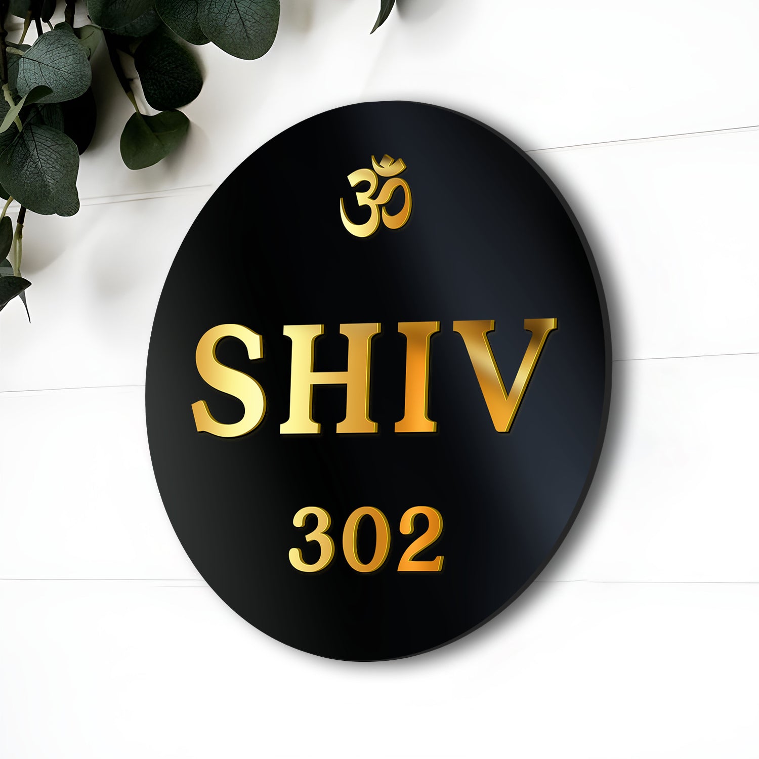 3D Acrylic Name Plate | Black Base with Golden 3D Letters with Religious symbol