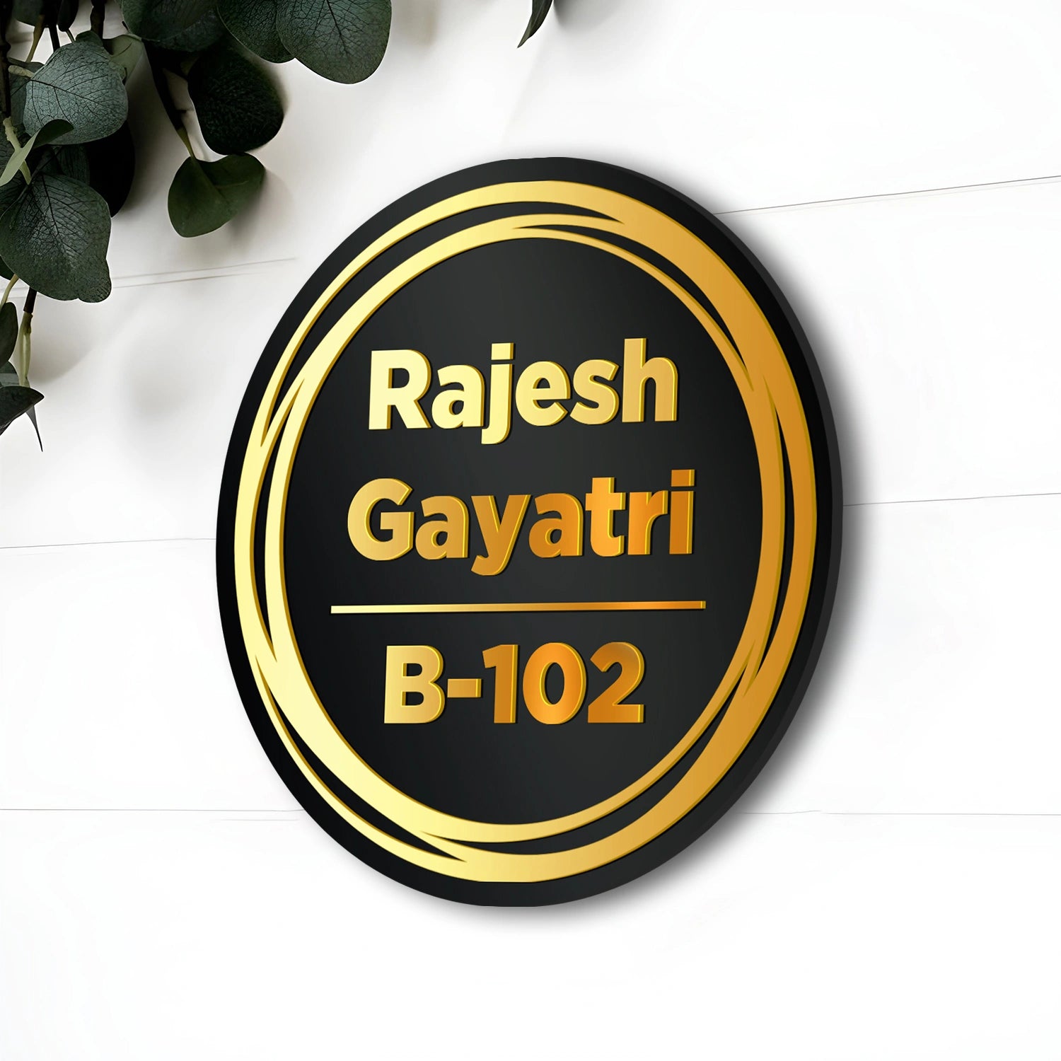 Black & Gold Brush Style 3D Acrylic Door Name Plate