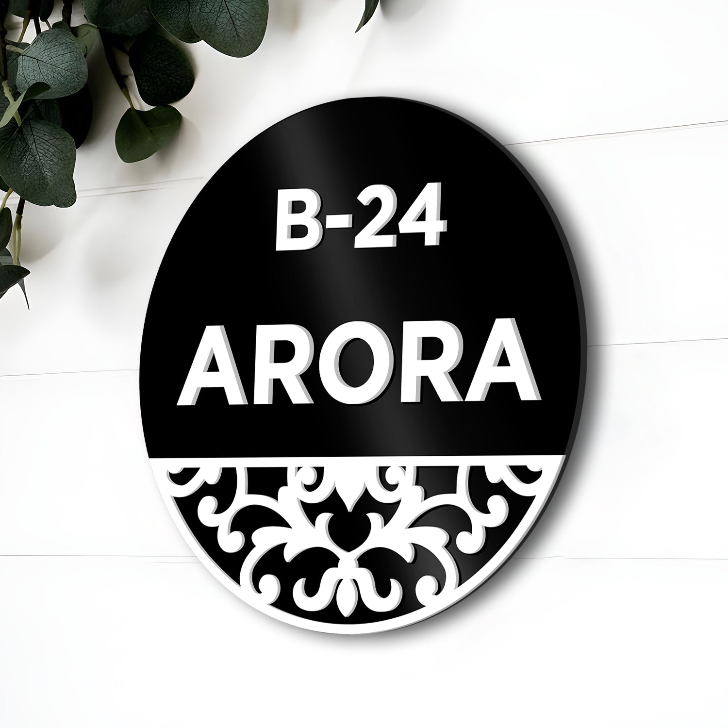 Modern 3D Acrylic Door Name Plate – Black Base with White Laser-Cut Design