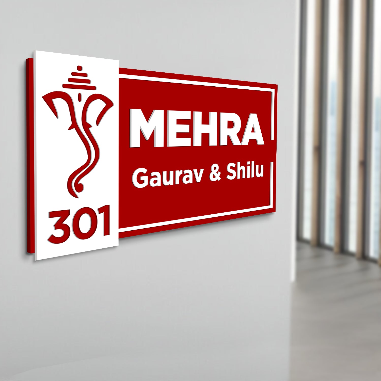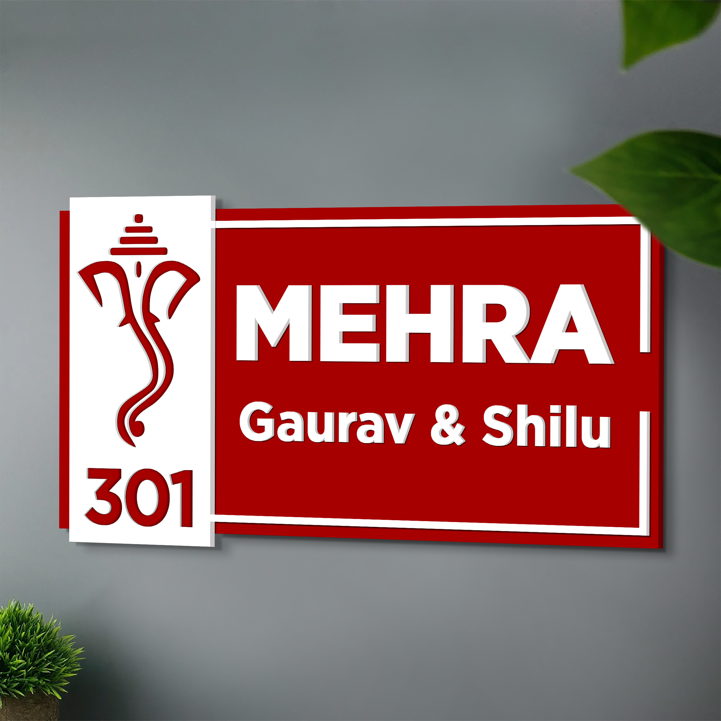 3D Name Plate for Home | Red Base with white cutting Letters