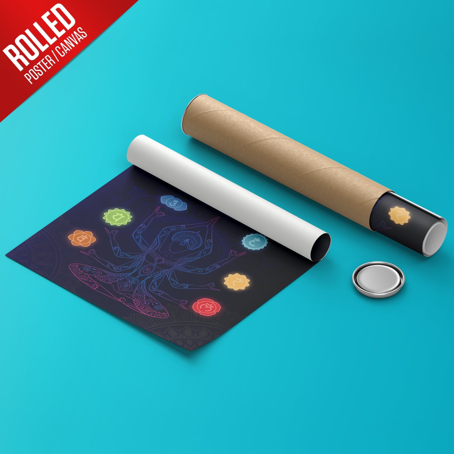 Rolled posters or canvas are artworks sent without a frame, safely packed in a tube, ready for you to frame locally as you like.