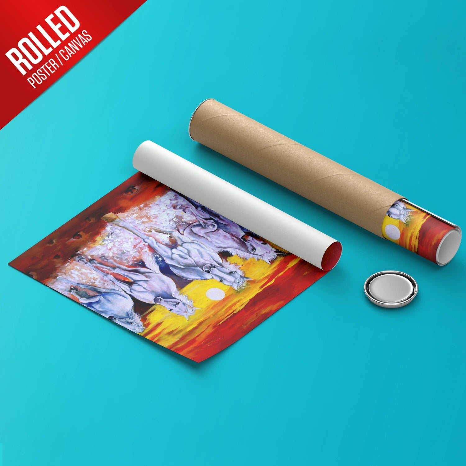 Rolled posters or canvas are artworks sent without a frame, safely packed in a tube, ready for you to frame locally as you like.