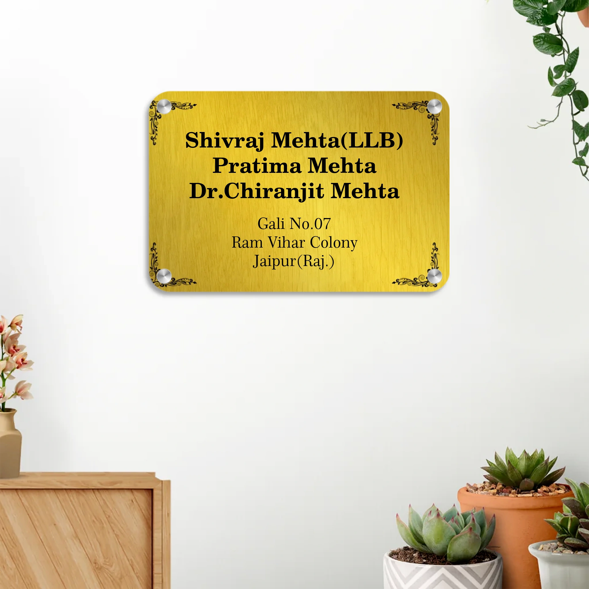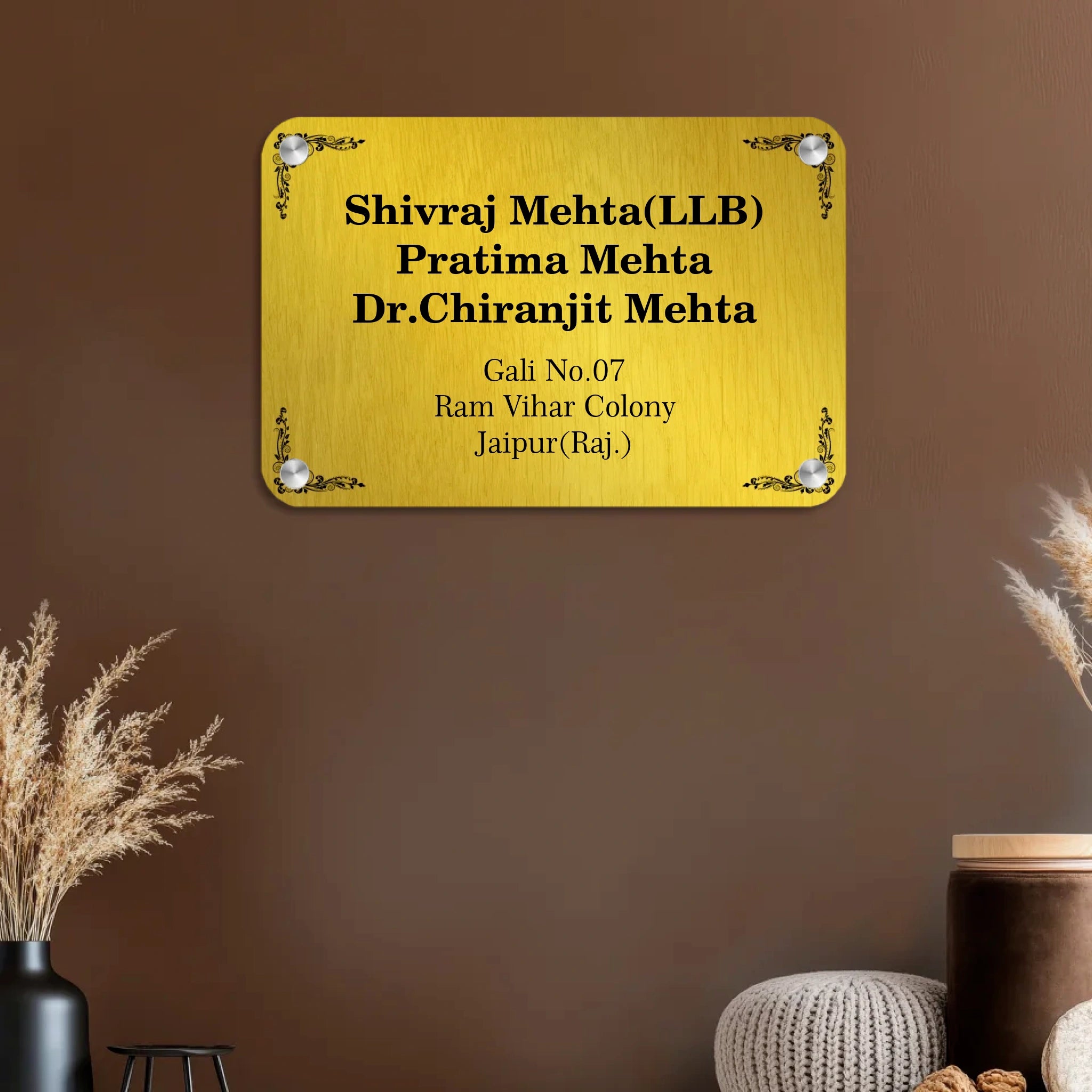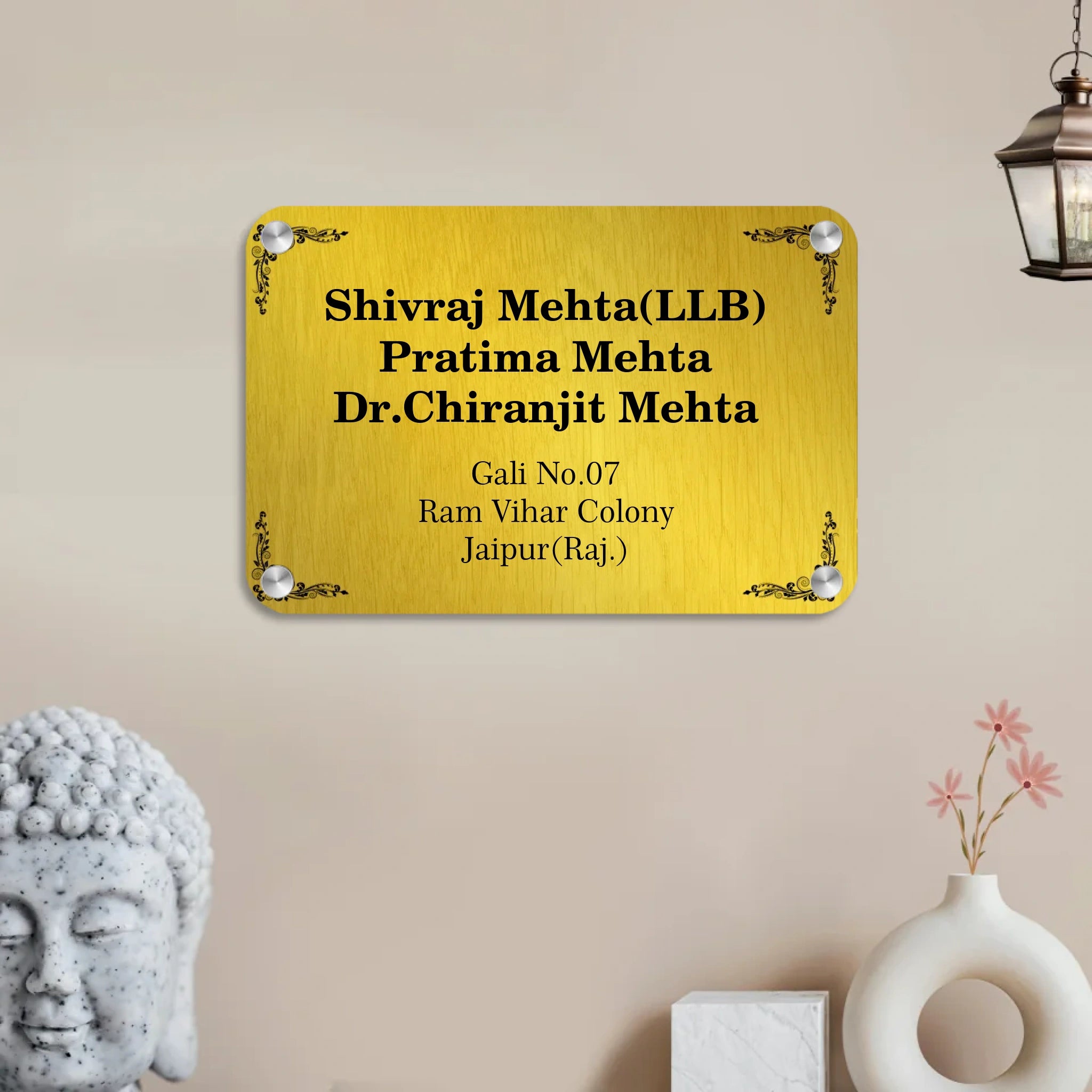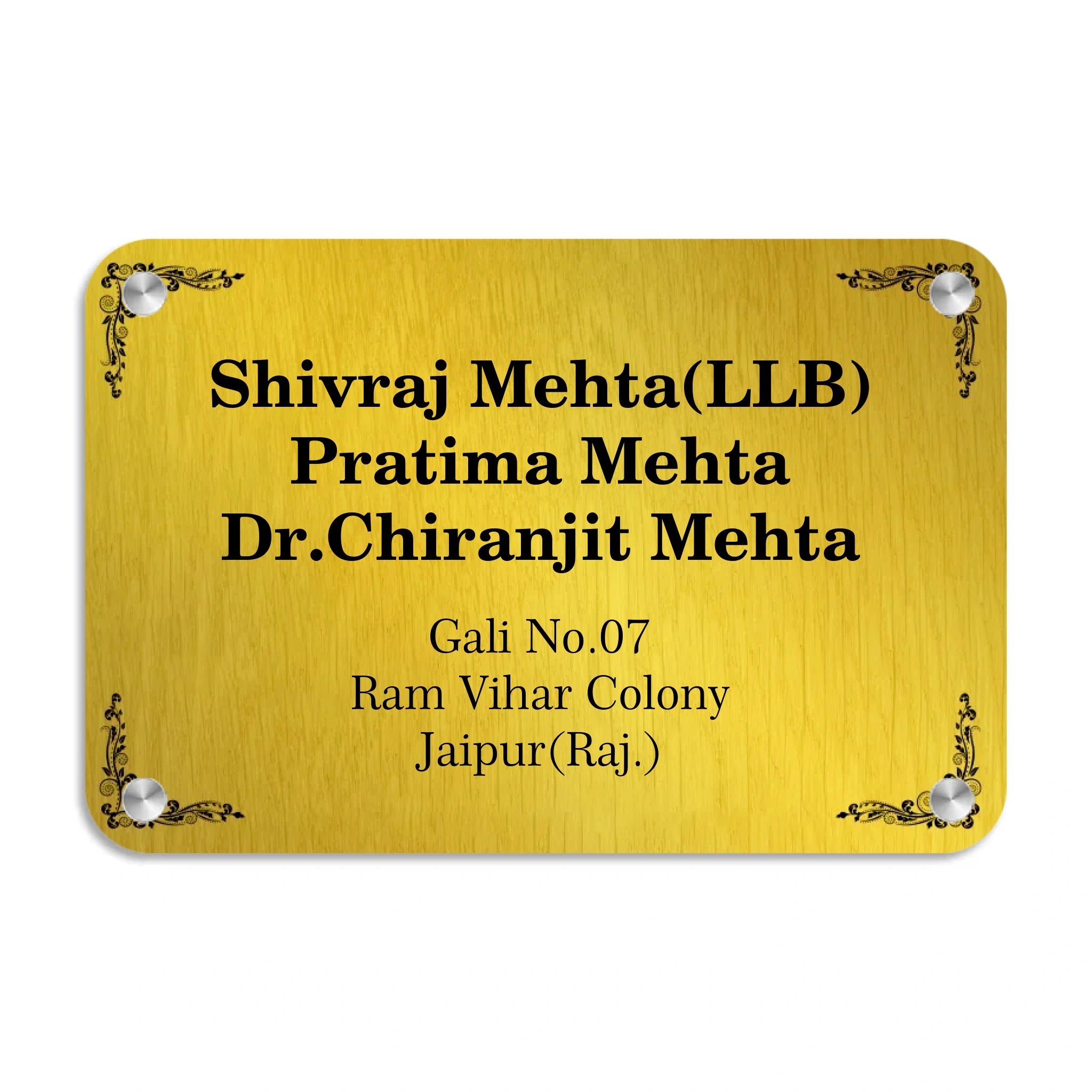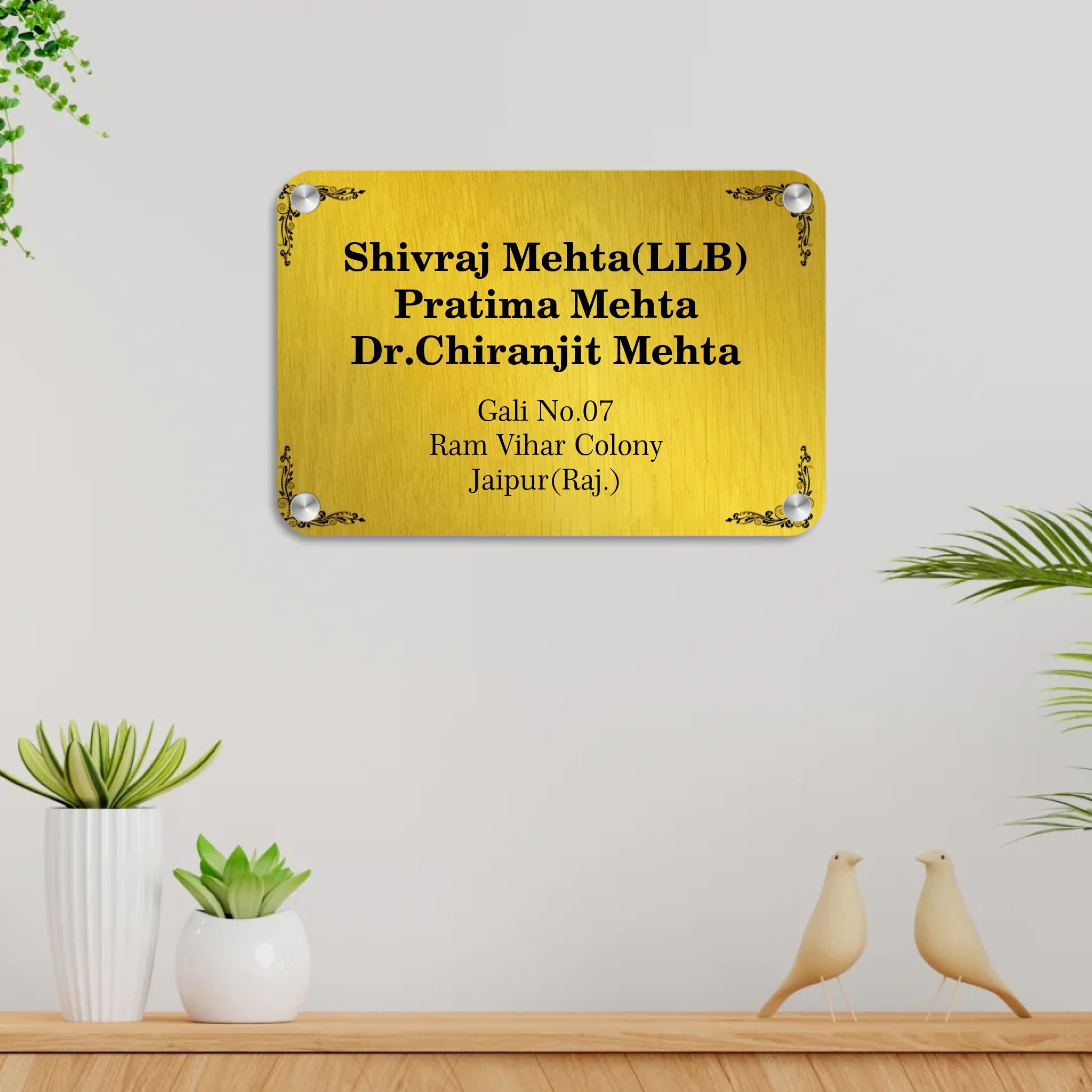 Acrylic Door Name Plate in Golden Background