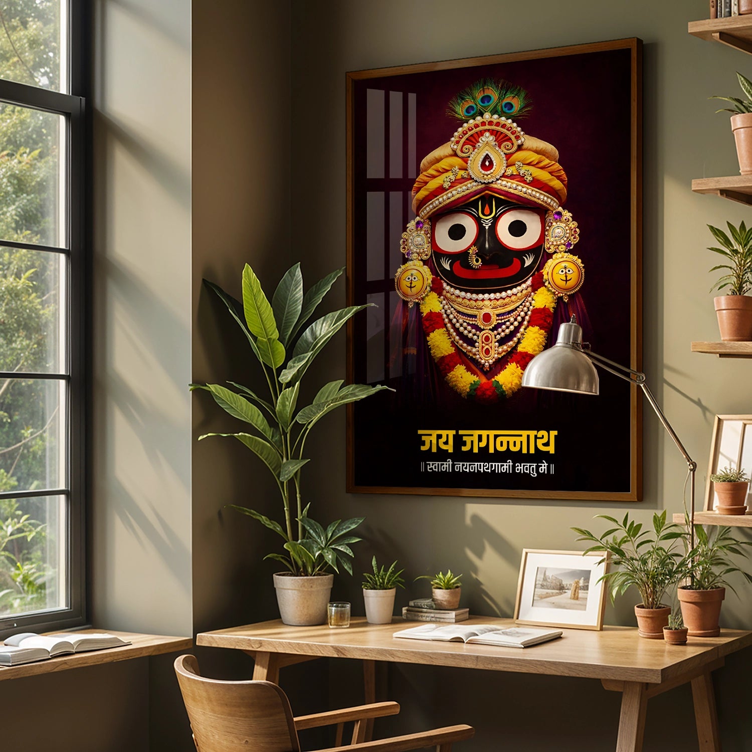 This artwork draws inspiration from the timeless spiritual presence of Bhagwan Jagannath, revered as the Lord of the Universe. Rooted in Odia culture and devotion, the expressive eyes, ornate crown, and sacred symbols reflect eternal watchfulness, protection, and divine balance. Every visual element represents faith, surrender, and inner strength, making this artwork more than décor—it is a daily spiritual reminder.