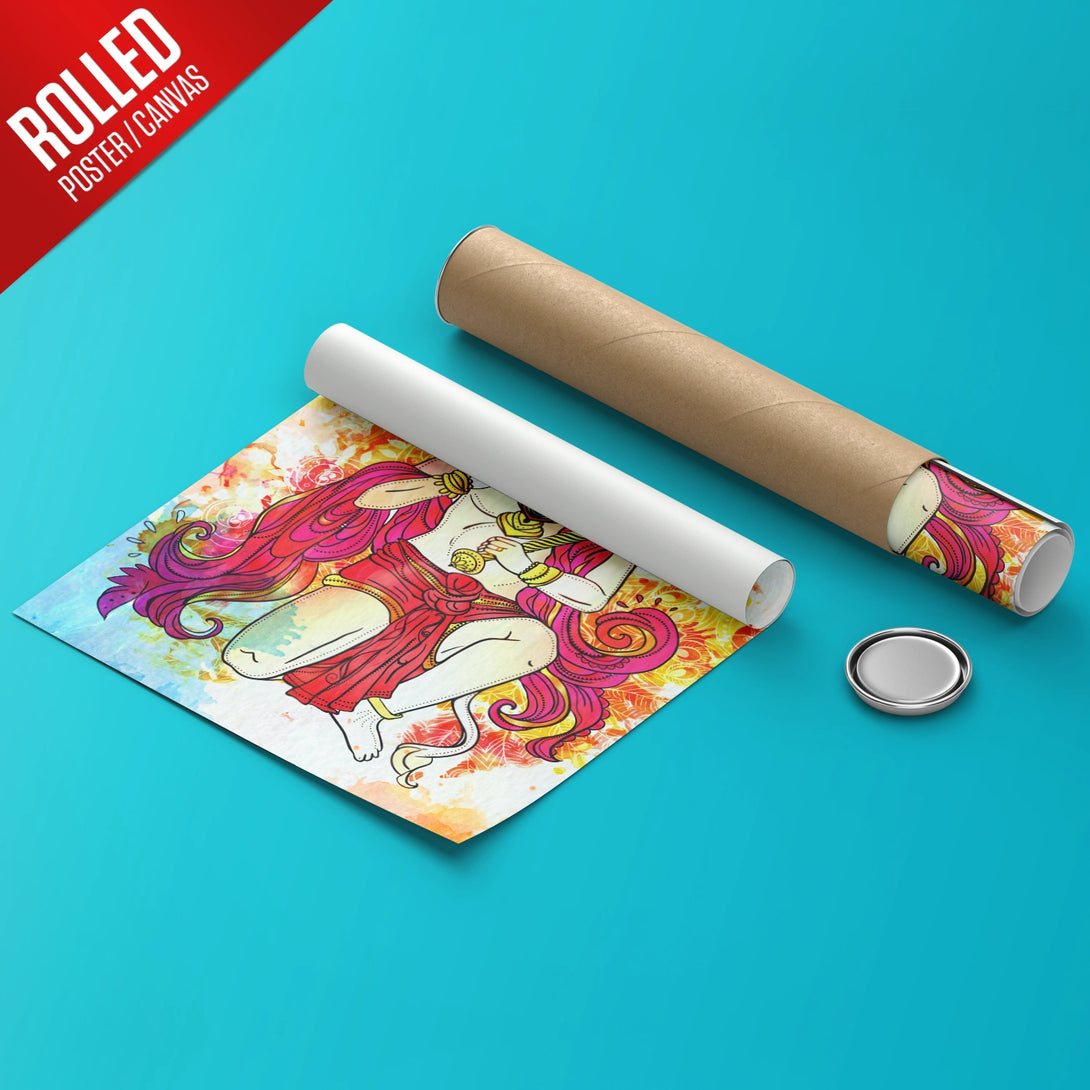 Rolled posters or canvas are artworks sent without a frame, safely packed in a tube, ready for you to frame locally as you like.