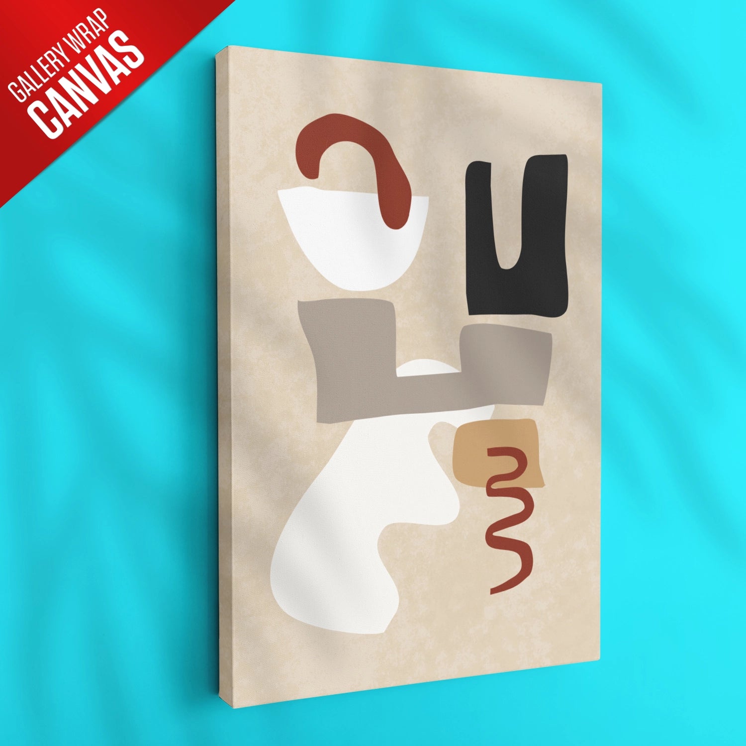 The artwork printed on canvas is stretched and wrapped around the edges of the wooden frame, creating a seamless and frameless appearance.