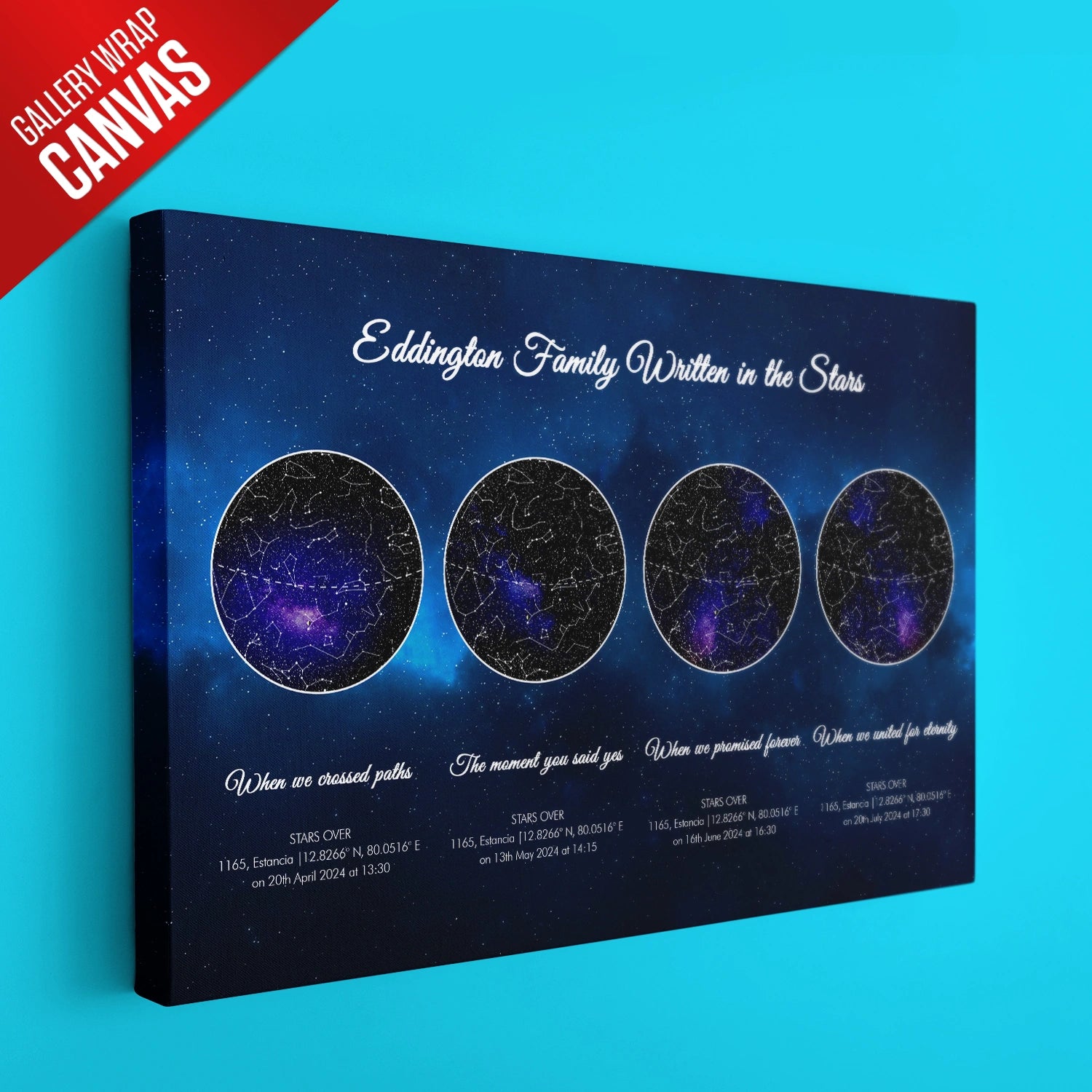 Imagine glancing at your wall and being transported back to the night you held your newborn for the first time or the moment you exchanged vows under the stars. This stunning artwork makes that possible. By providing the details for your chosen milestones—date, time, location, and a heartfelt message—your story becomes the centerpiece of your home. The high-quality print, available in a chic frame or a gallery-worthy canvas, is designed to complement any décor, making it the perfect keepsake or gift for loved ones.