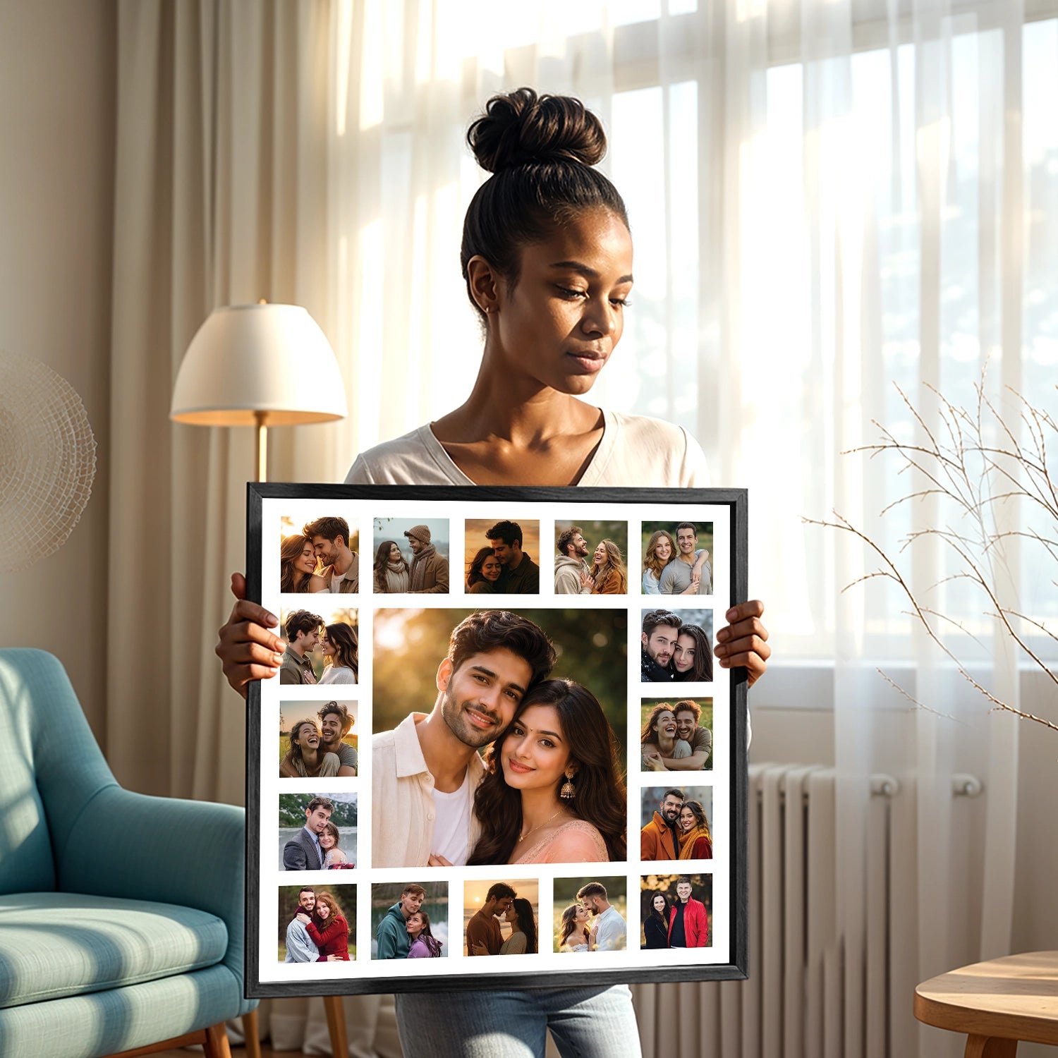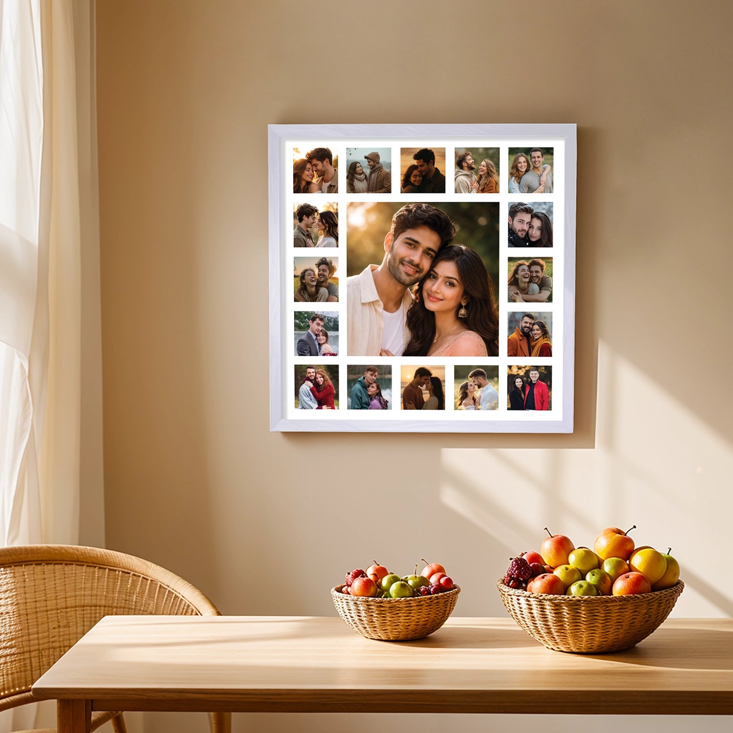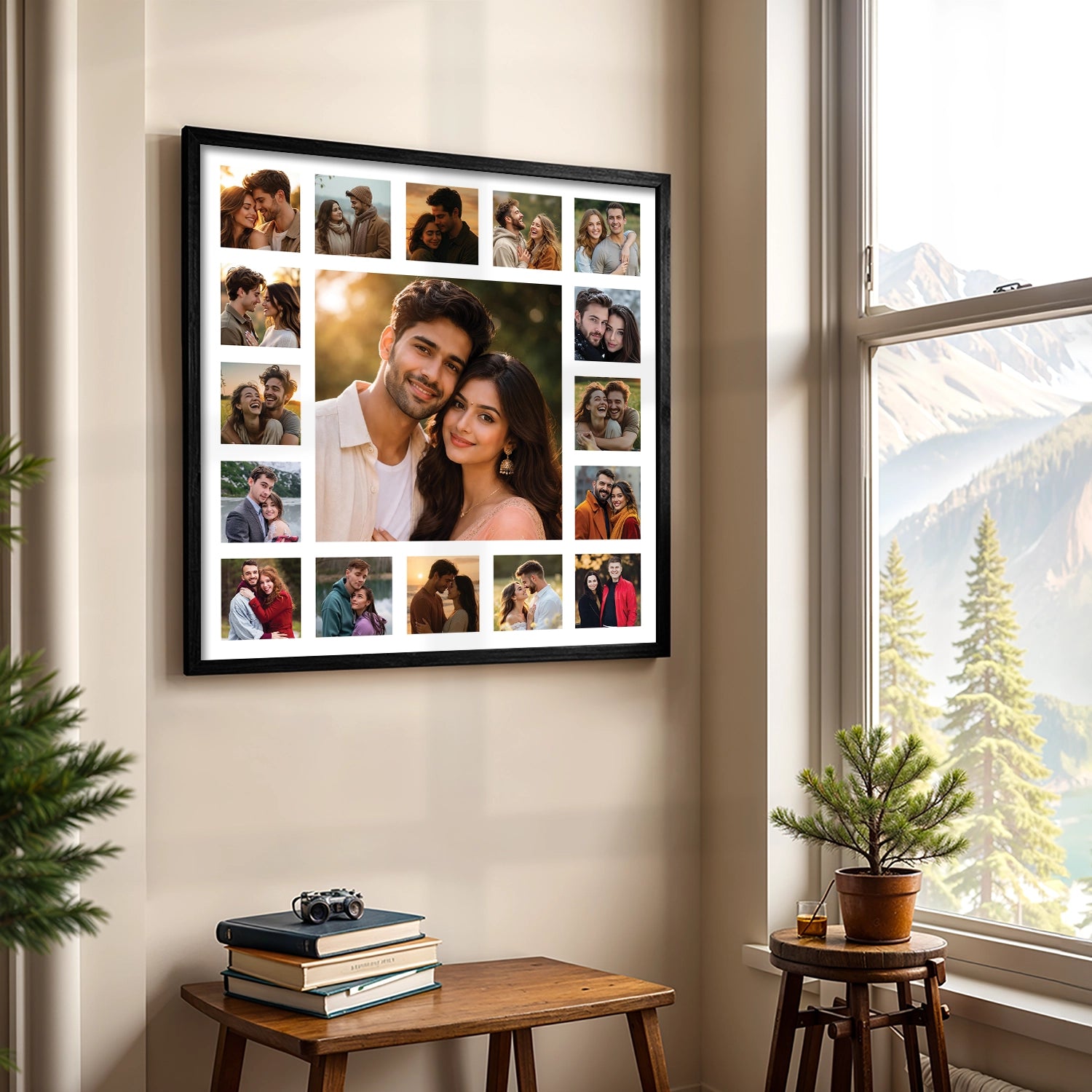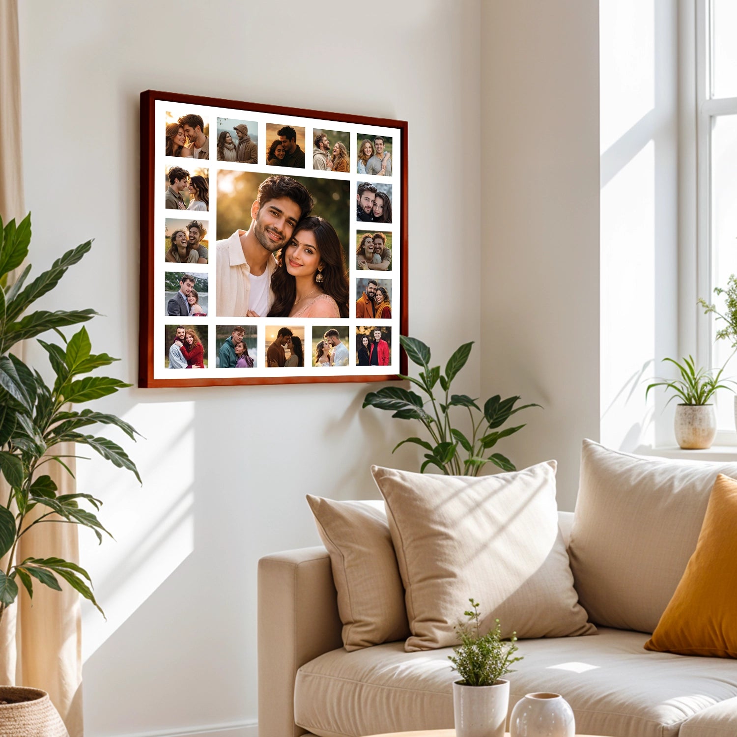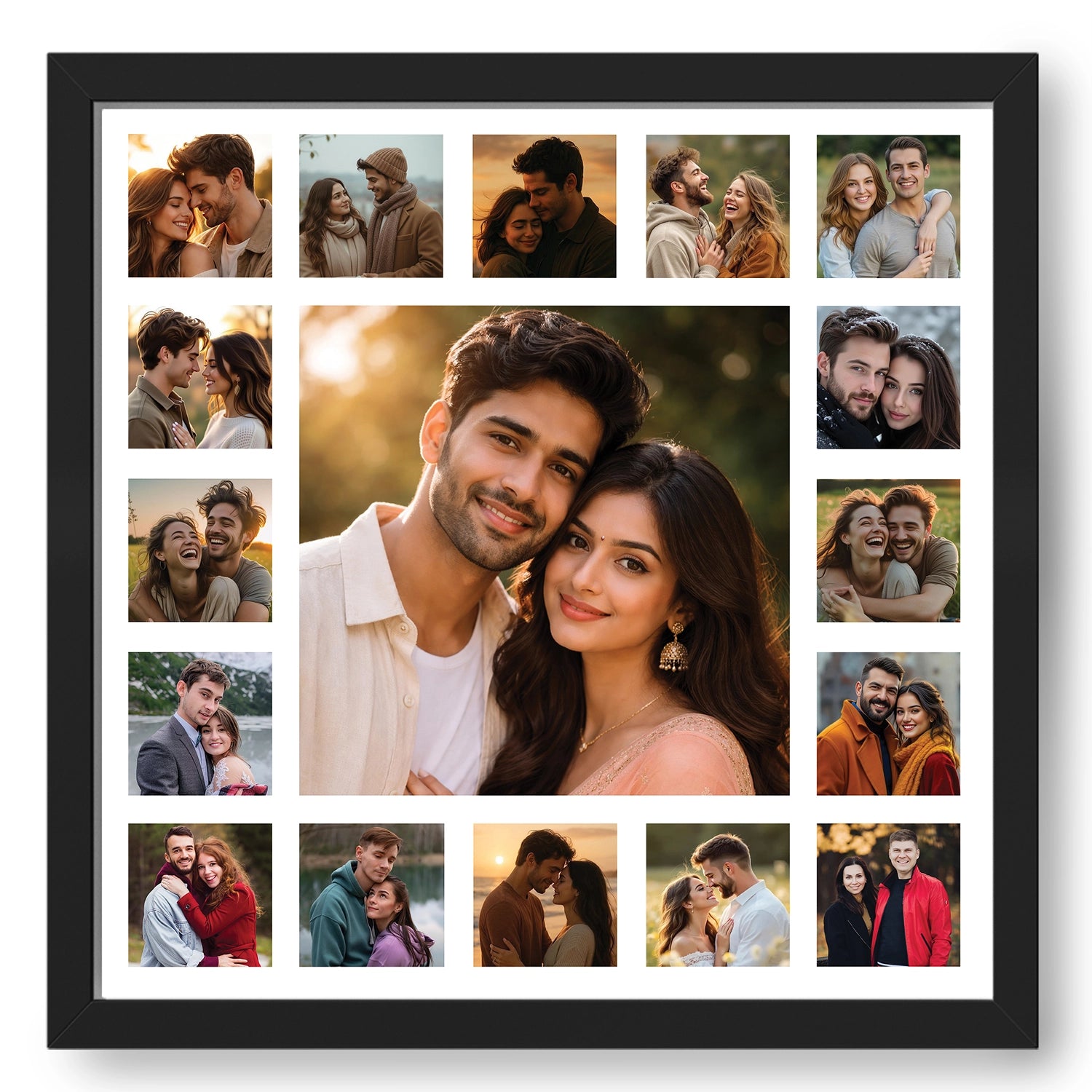 Every love story is made of moments—glances, laughter, quiet warmth, and shared dreams. This 17-photo romantic couple collage is designed to bring those moments together into one harmonious artwork. Thoughtfully arranged and color-balanced, this collage transforms individual memories into a single visual story that feels intimate, elegant, and timeless.