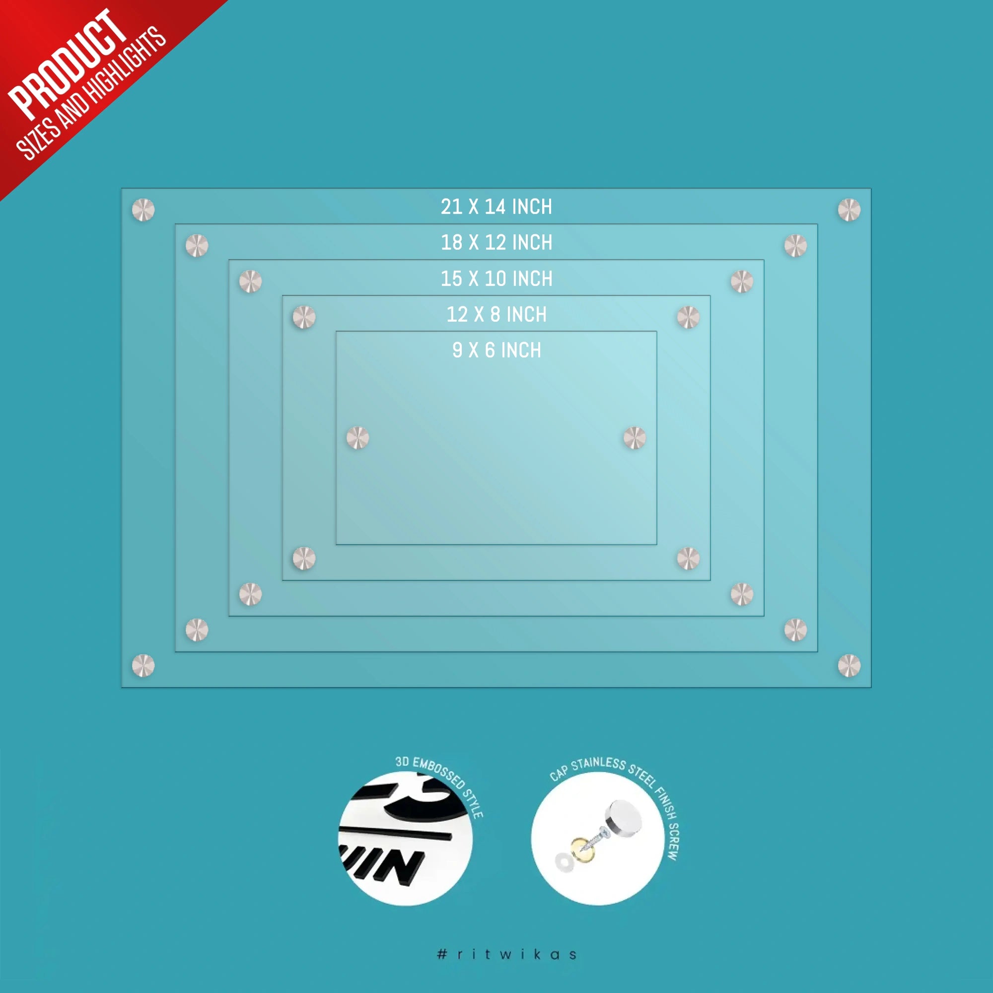 6x9 Inches, 8x12 Inches, 10x15 Inches, 12x18 Inches, 14x21 Inches |