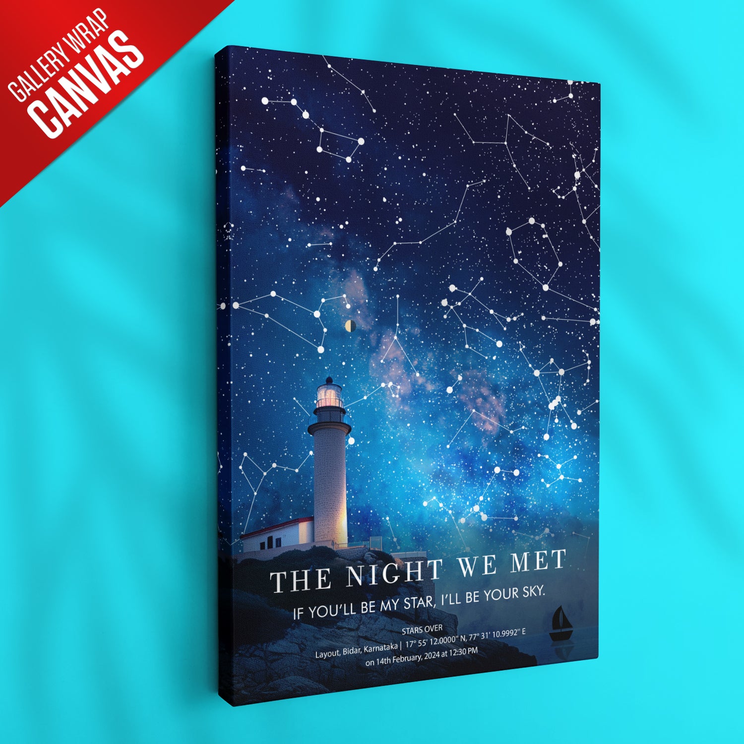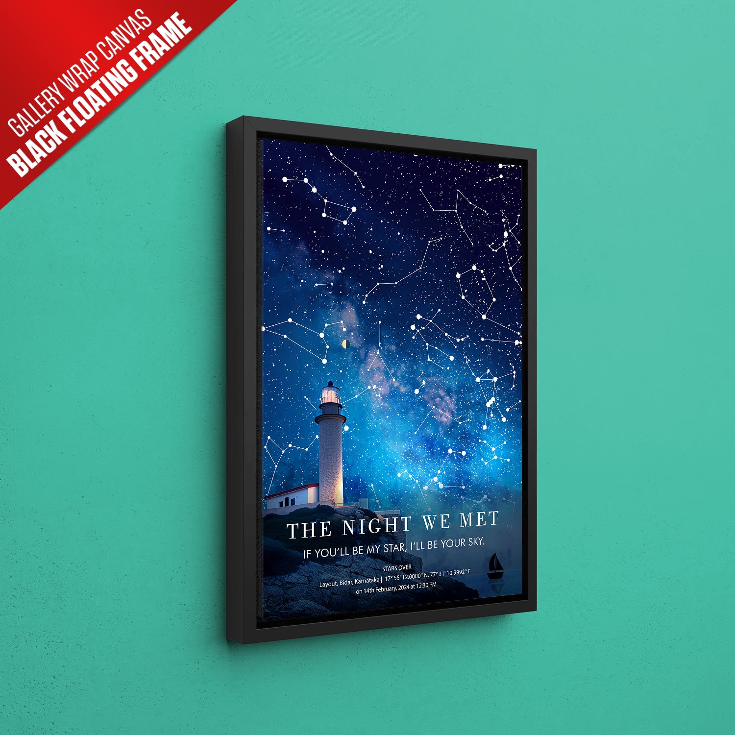 The lighthouse, a symbol of hope and guidance, is the perfect metaphor for the moments that have shaped your life. Pairing this iconic imagery with the magic of a starry night, this star map serves as more than just décor—it’s a daily reminder of the love, strength, and inspiration that guide you. Available in multiple sizes as a framed print or gallery canvas, its elegant design enhances any space, blending seamlessly into modern and classic interiors alike.
