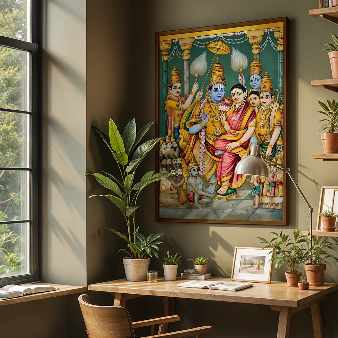 Divine Ram Sita Kalyanam Painting – South Indian Art Style