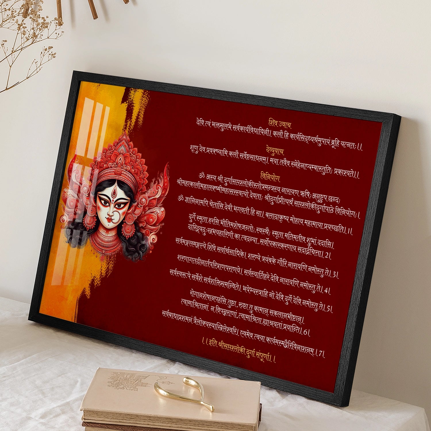 Transform your living space with our stunning Durga Saptashloki inspired artwork — a luxurious addition that radiates strength and divine energy. Crafted with exquisite detail, this spiritual masterpiece captures the essence of goddess Durga’s divine power, making it a must-have for every devotee and art lover. Whether you’re seeking positive energy, a sacred ambiance, or a meaningful gift, this artwork will elevate your space and inspire daily devotion. Available in versatile formats including poster prints, elegant frames (black, white, or dark brown), and luxurious gallery wrap canvases, it seamlessly blends tradition with modern decor. Elevate your environment and invite divine blessings today!