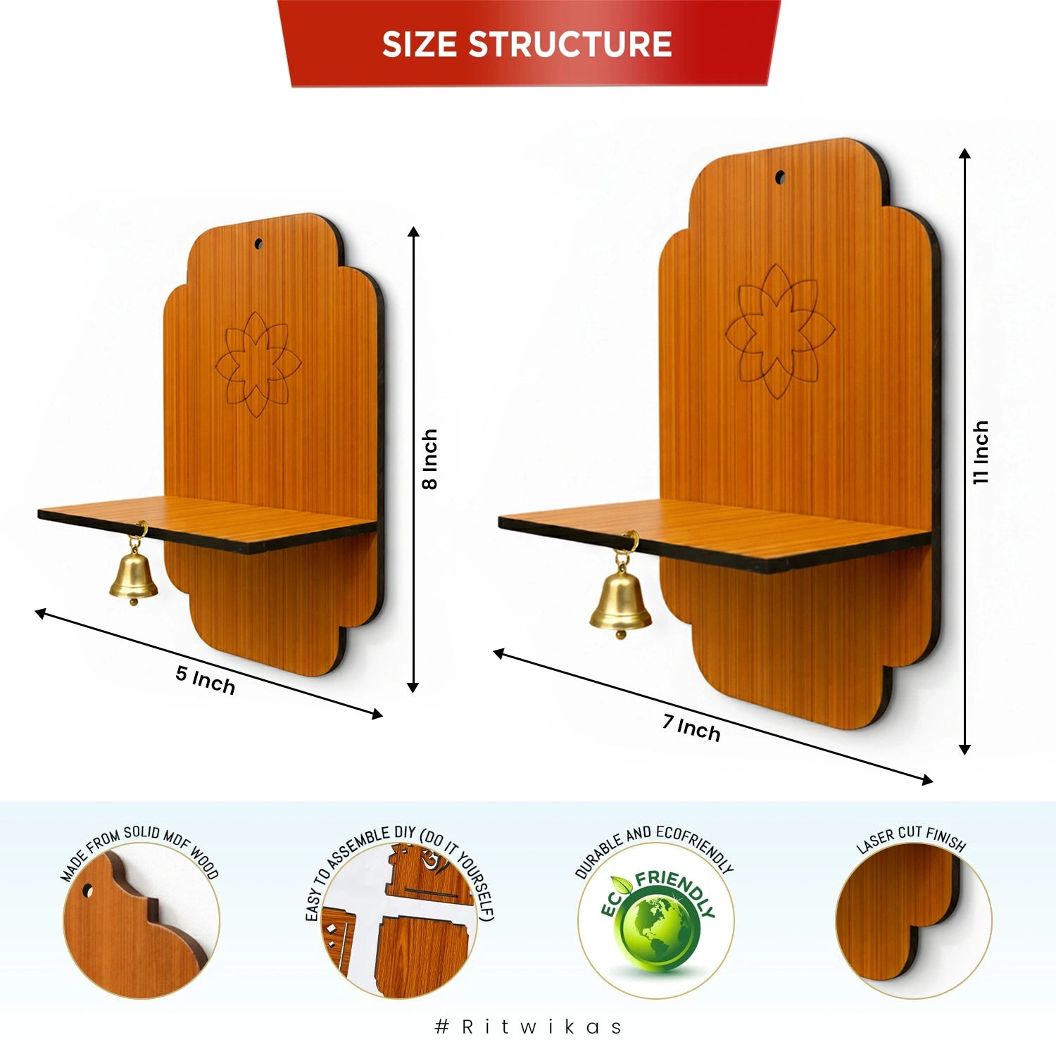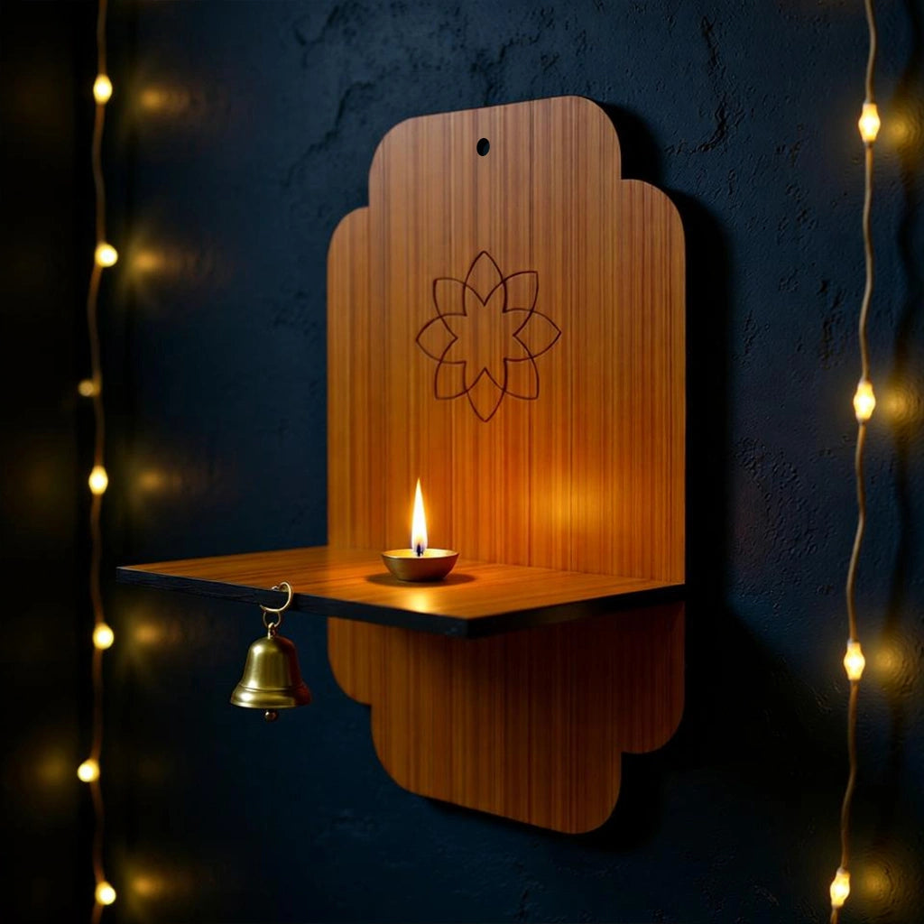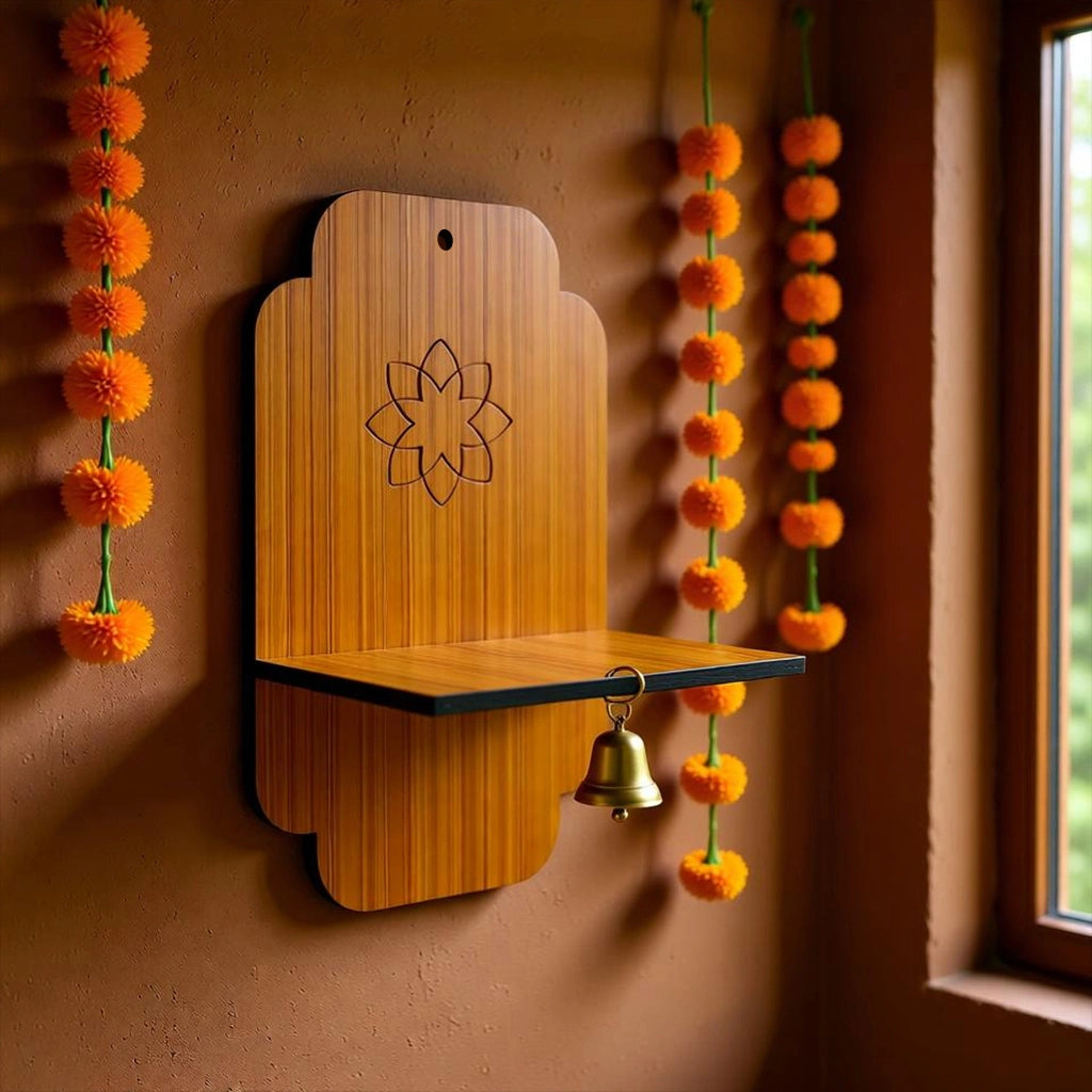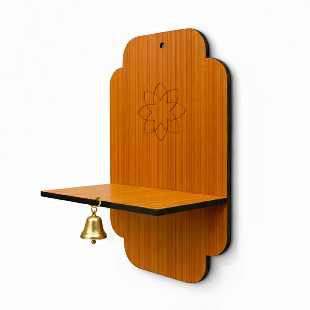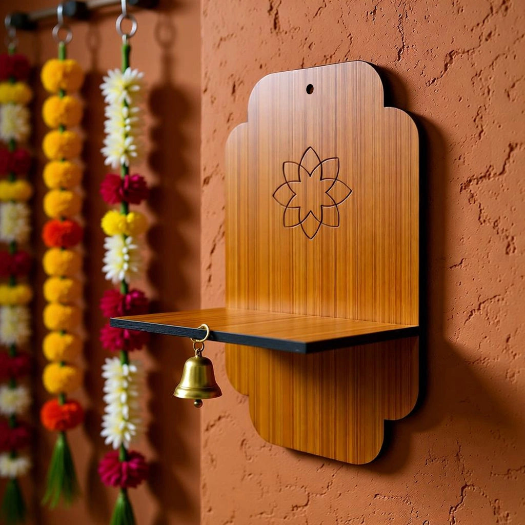 Featuring the unique Floral Designed, Minimalist stand, this altar is carved from premium-quality wood with a rich, durable finish that complements any interior decor. Whether you are setting up a dedicated pooja room or a small prayer corner in your apartment, this wall-mounted shelf provides a sturdy and beautiful platform for your deities. The included brass bell adds a touch of traditional charm, bringing the temple atmosphere right into your living space.