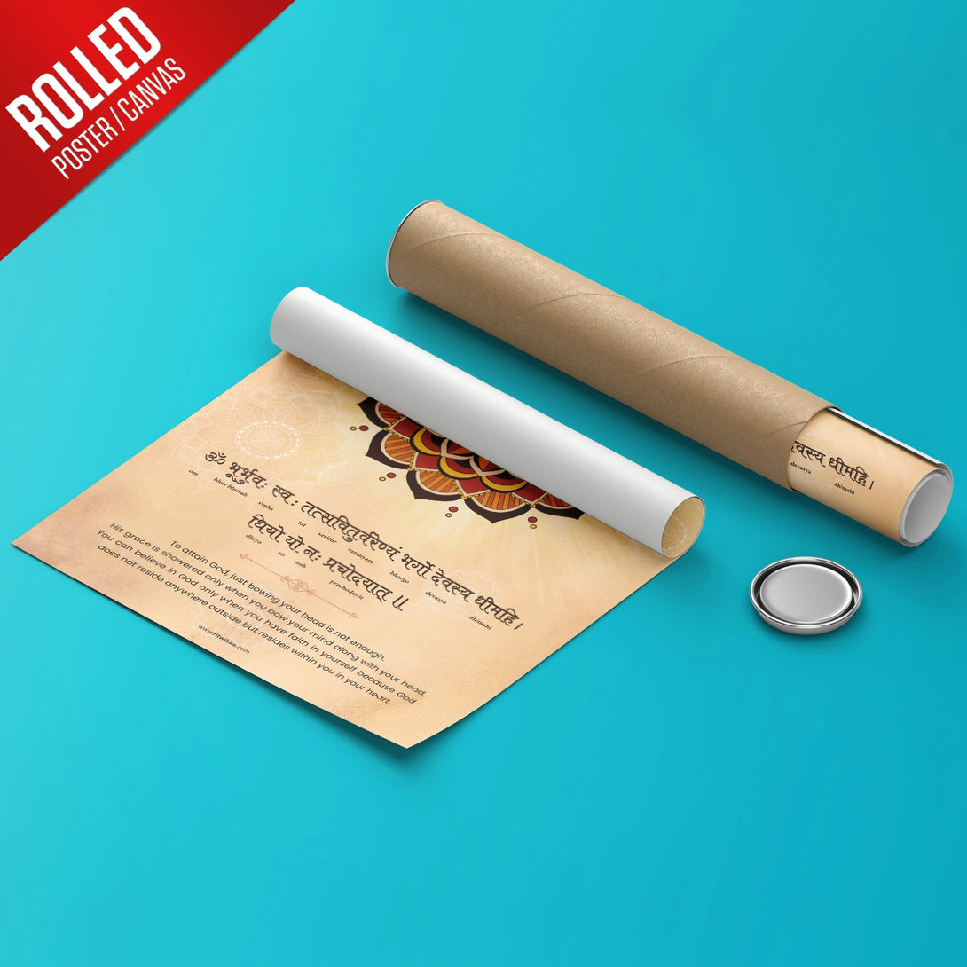 Introducing Ritwika's Gayatri Mantra Artwork, a testament to timeless elegance and spiritual depth. Our collection offers a variety of presentation options, including poster prints, framed artworks, and gallery wrap canvases, ensuring a seamless integration into any setting.