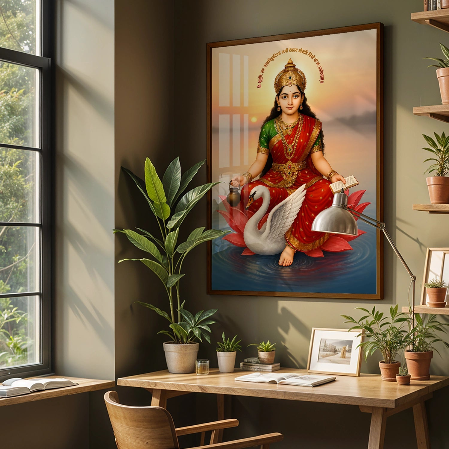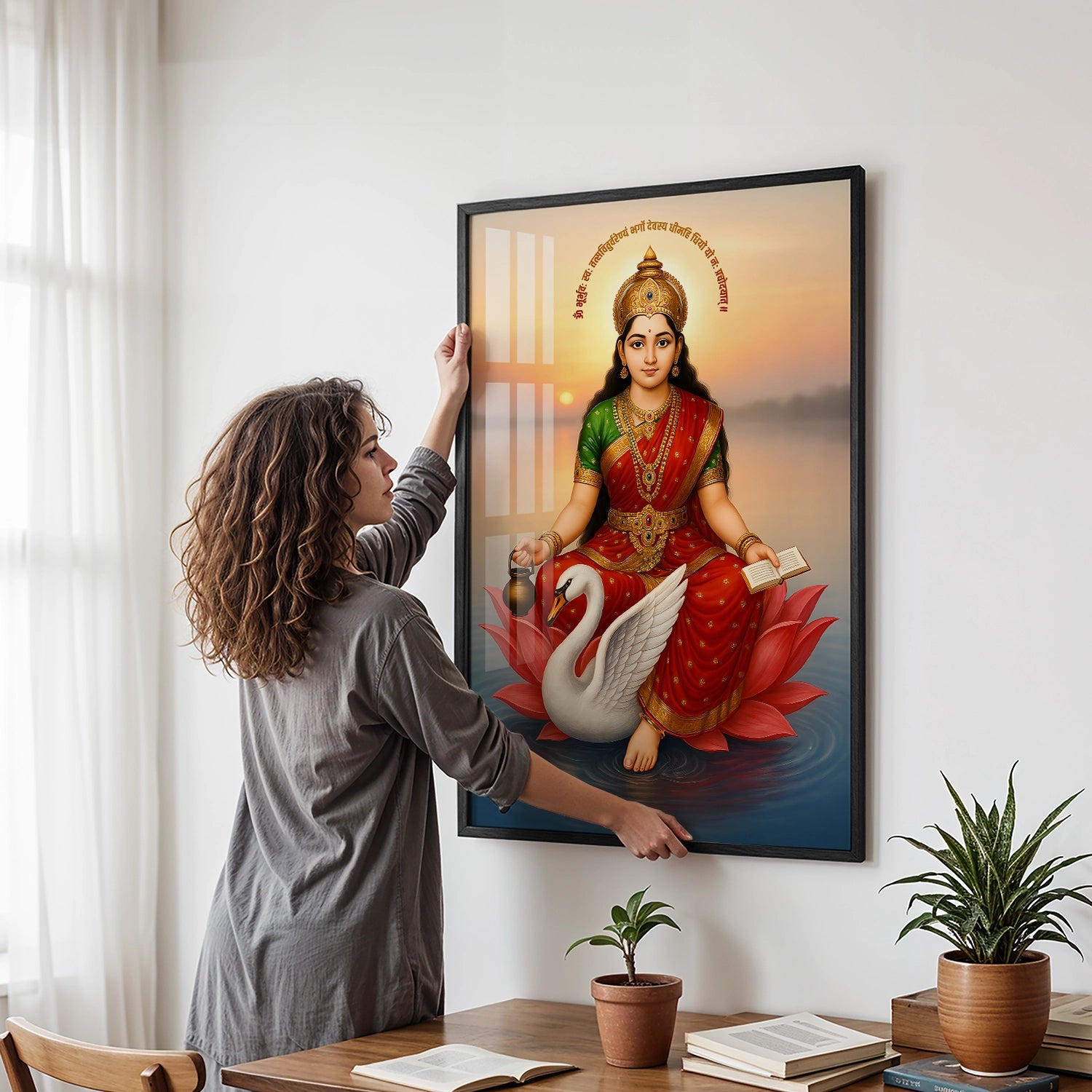 Imagine waking up every day to the serene presence of Gayatri Mata’s divine energy, filling your space with peace and positivity. This artwork is more than decor; it’s a source of spiritual strength that can help you find clarity and calm in the chaos of life. Its luxurious finish and unbreakable quality ensure long-lasting beauty, making it a perfect gift for loved ones or a treasured addition to your personal collection. Elevate your home’s ambiance and invite divine blessings with this stunning piece today!