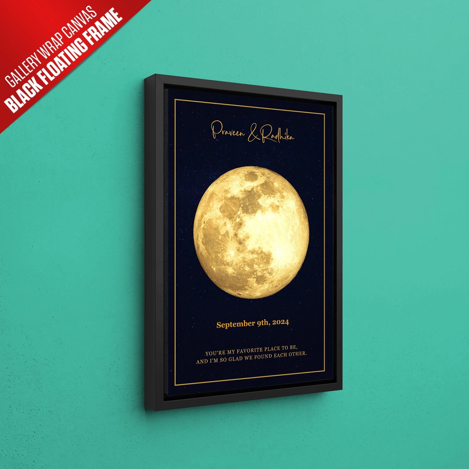 Personalize your artwork with a name, date, location, and a heartfelt message to make it truly special. Available in premium poster prints, framed options, and gallery-wrapped canvas, this Moon Phase Wall Décor is designed to elevate your home or office space with its celestial charm. Order now and let your special night shine in golden elegance!