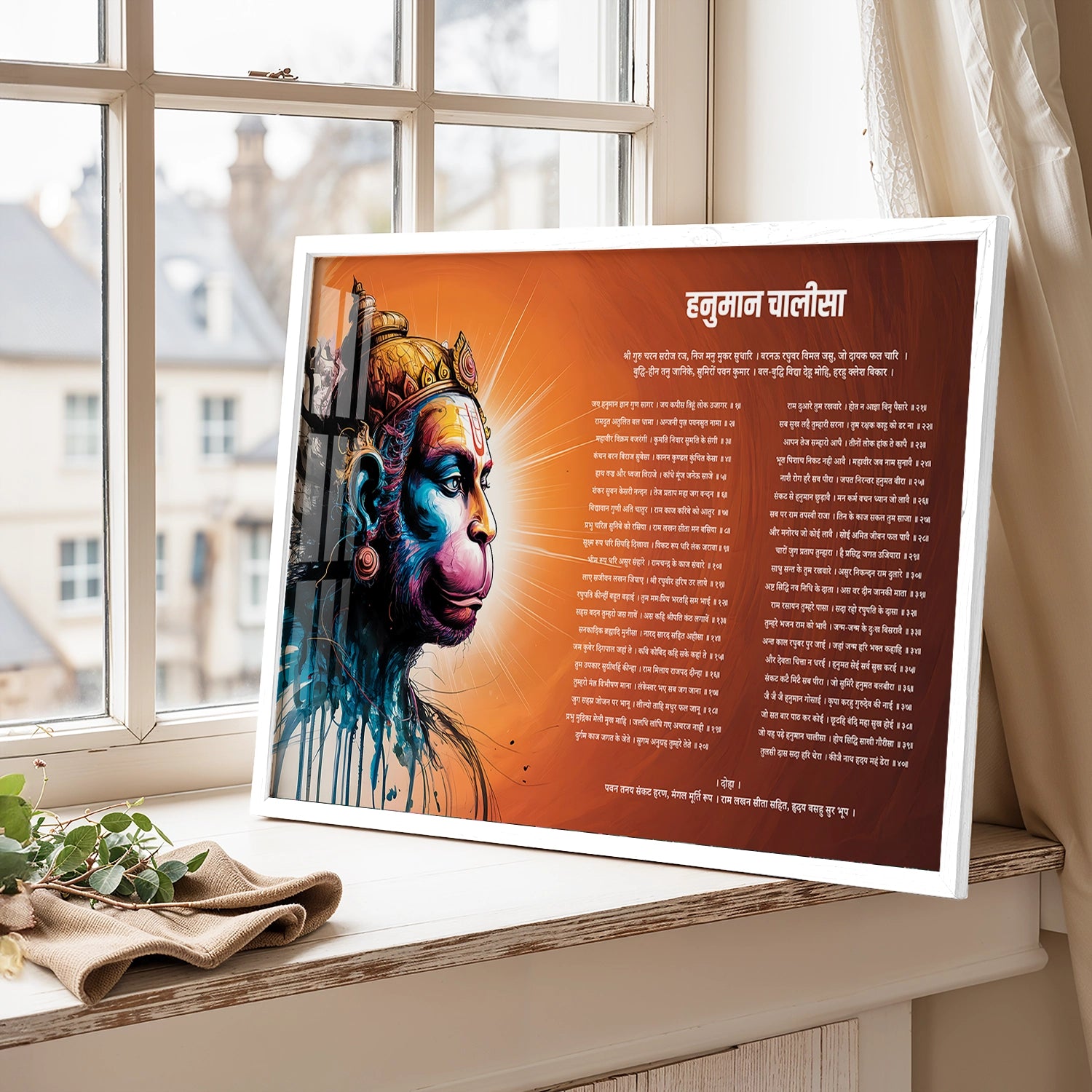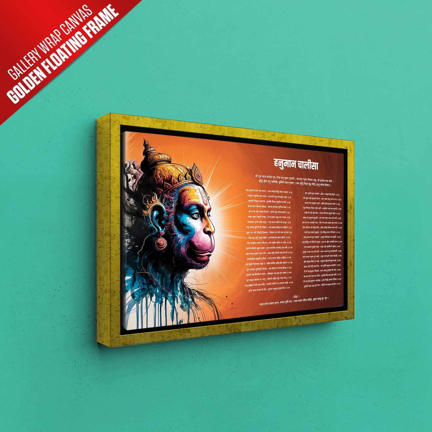 Transform your living space with our captivating Hanuman Chalisa-inspired artwork, crafted to evoke devotion and inspire strength. This vibrant, artistically rendered piece tells the timeless story of Lord Hanuman’s unwavering devotion, courage, and divine power. Every fan and devotee must adorn their space with this magnificent artwork, creating a sanctuary of positivity and spiritual energy. Whether you buy for yourself or as a heartfelt gift, this art piece is designed to elevate your home's ambiance—available in glossy poster prints, luxurious gallery wrap canvases, and elegant framed options such as black, white, or dark brown frames.
