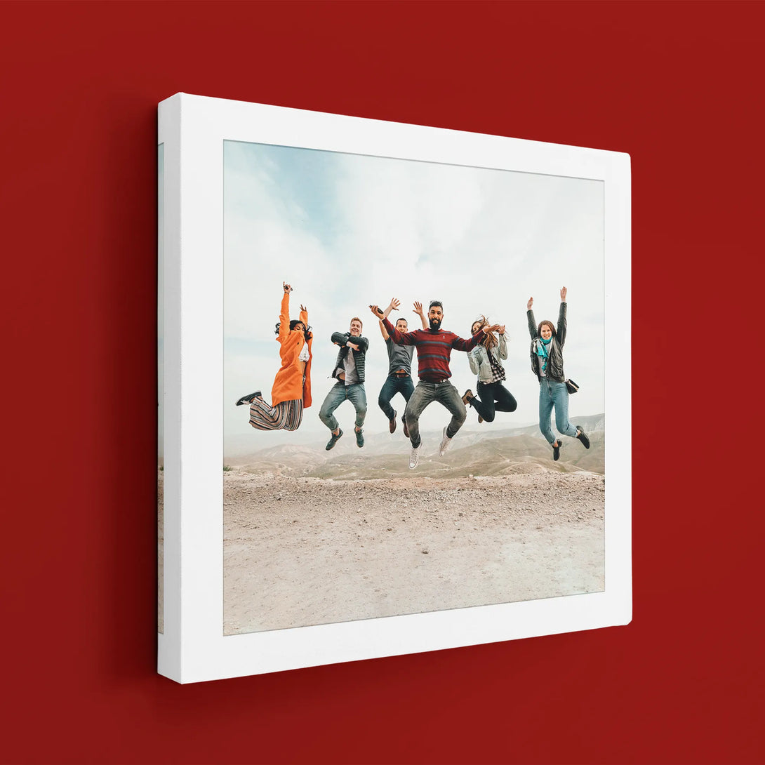 A frameless artwork style where your photo is printed on canvas and stretched over a wooden case.