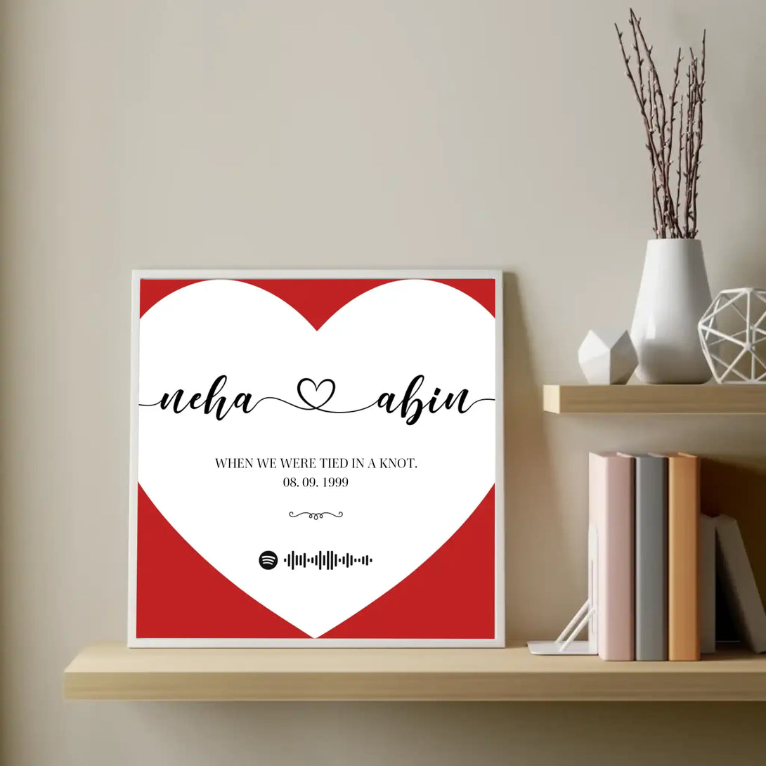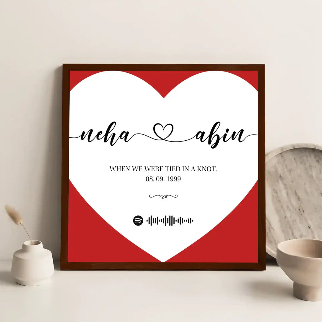 The desk photo frame comes with the option to add your own name, message, and date to the design, making it a perfect gift for a loved one or a special way to commemorate an important event. The heart artwork and personalized details are expertly printed onto high-quality, durable materials that will stand the test of time.