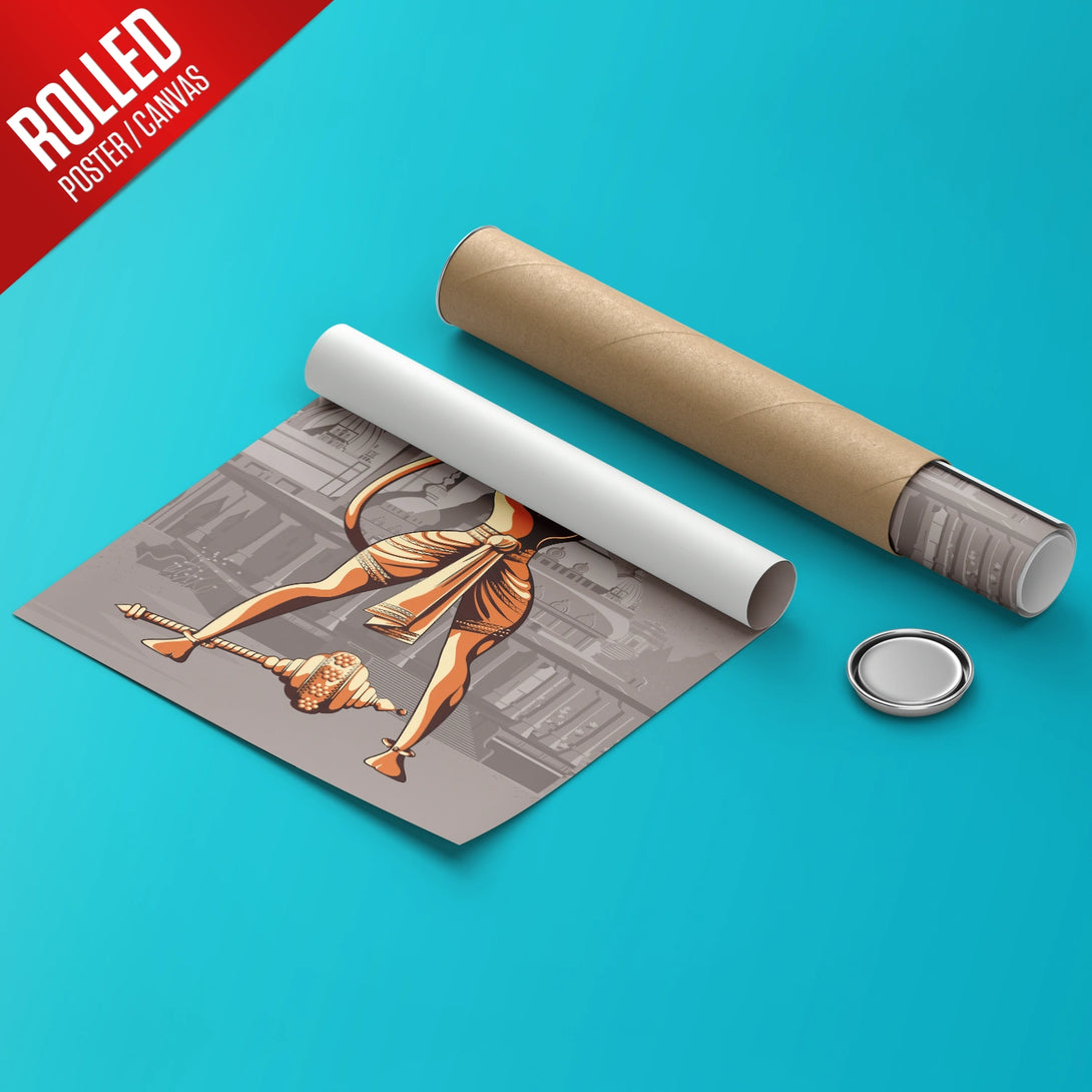 Rolled posters or canvas are artworks sent without a frame, safely packed in a tube, ready for you to frame locally as you like.