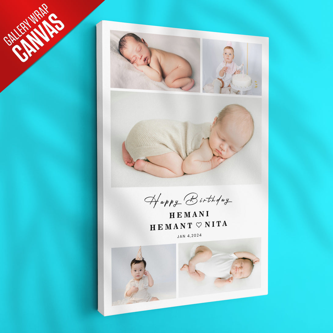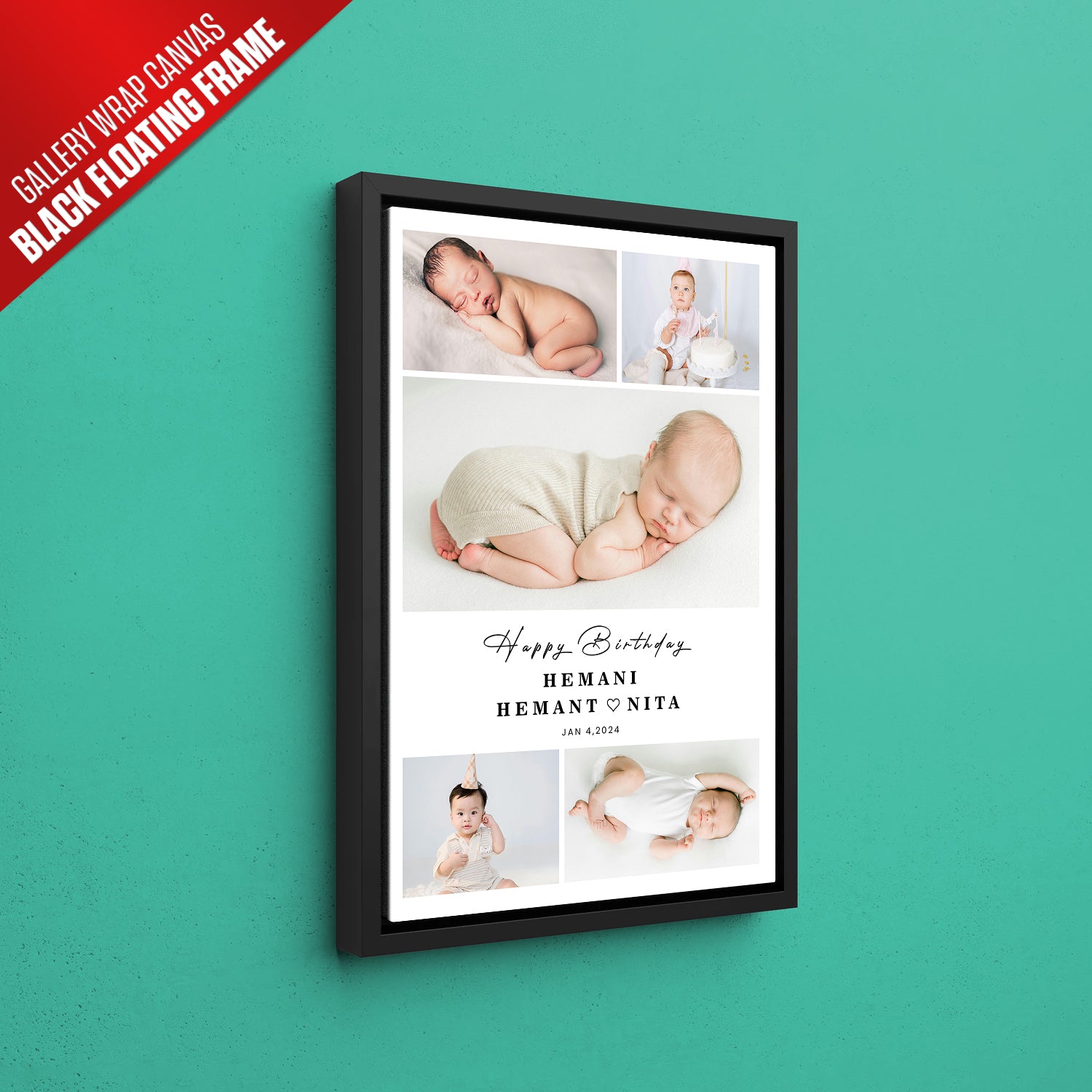 Capture life’s most precious memories with this versatile, customizable collage artwork! Perfect for newborns, birthdays, anniversaries, or any special occasion, this piece is designed to celebrate moments that matter. Simply upload a selection of photos, add a personalized name and message, and let us transform your memories into a beautiful work of art. You’ll be able to preview your custom design before it’s printed, ensuring it perfectly captures the essence of the occasion. Available in both framed and gallery-wrapped canvas options, this artwork is a timeless way to turn memories into keepsakes.