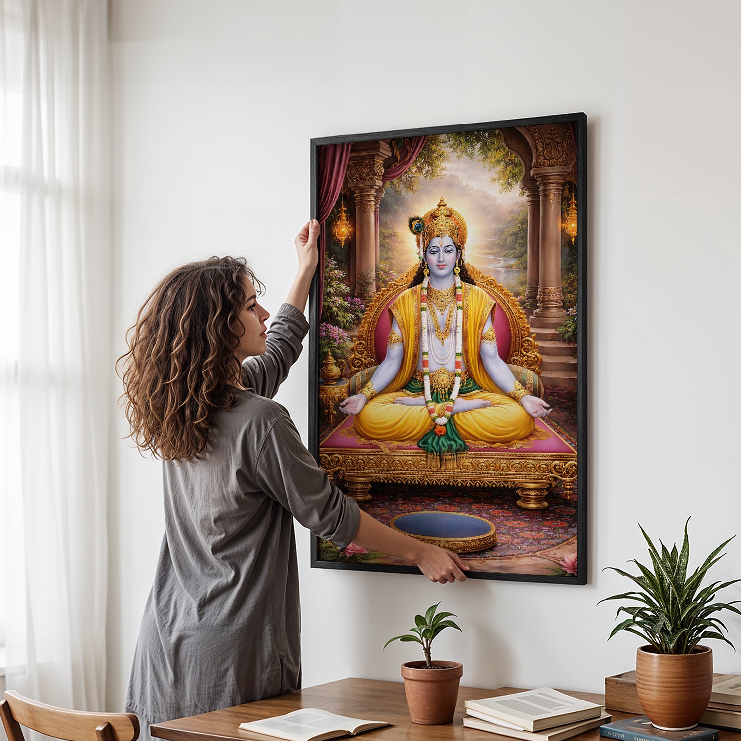 You can place it in your living room, bedroom, office, or pooja area—it instantly adds a peaceful and elegant touch. Lightweight and easy to hang, it not only enhances your décor but also creates a space where you can feel more relaxed, focused, and connected.