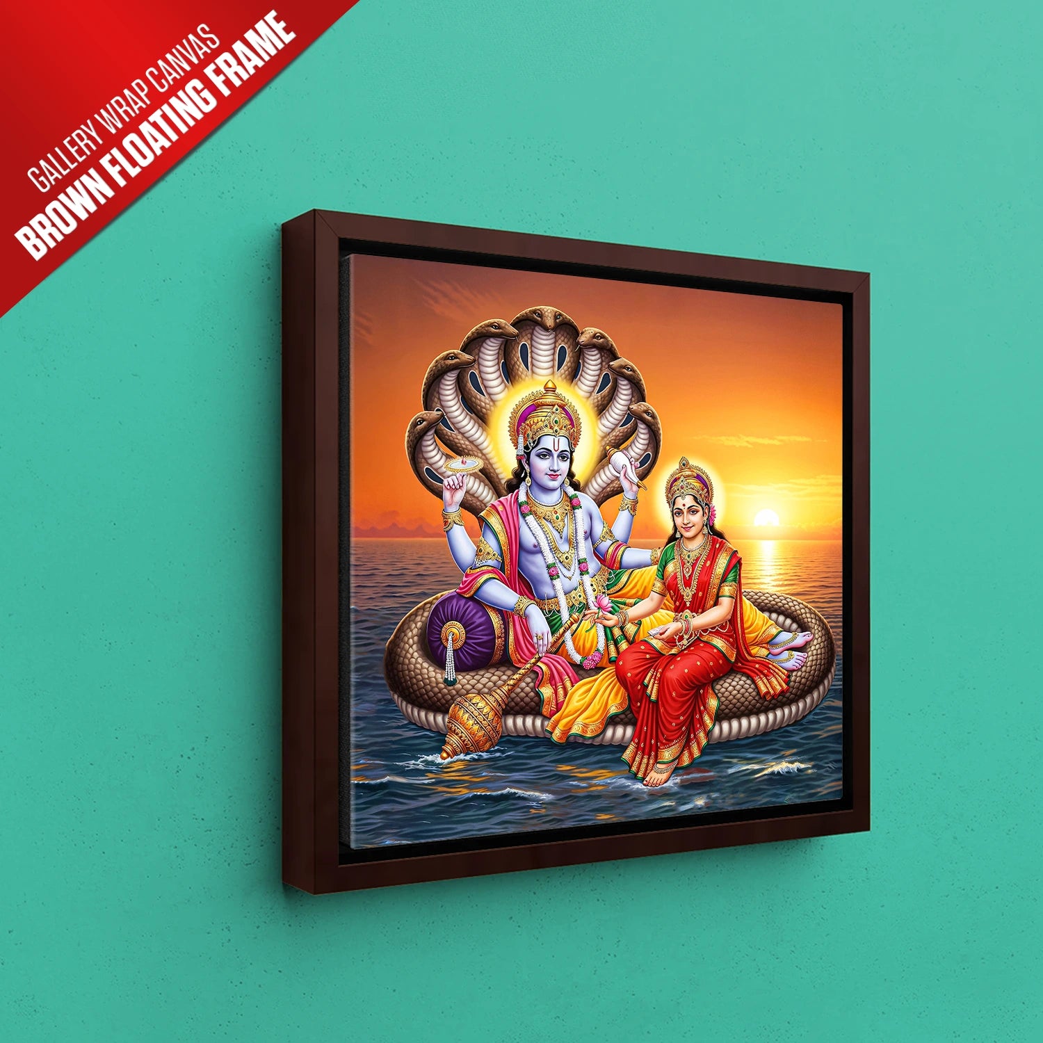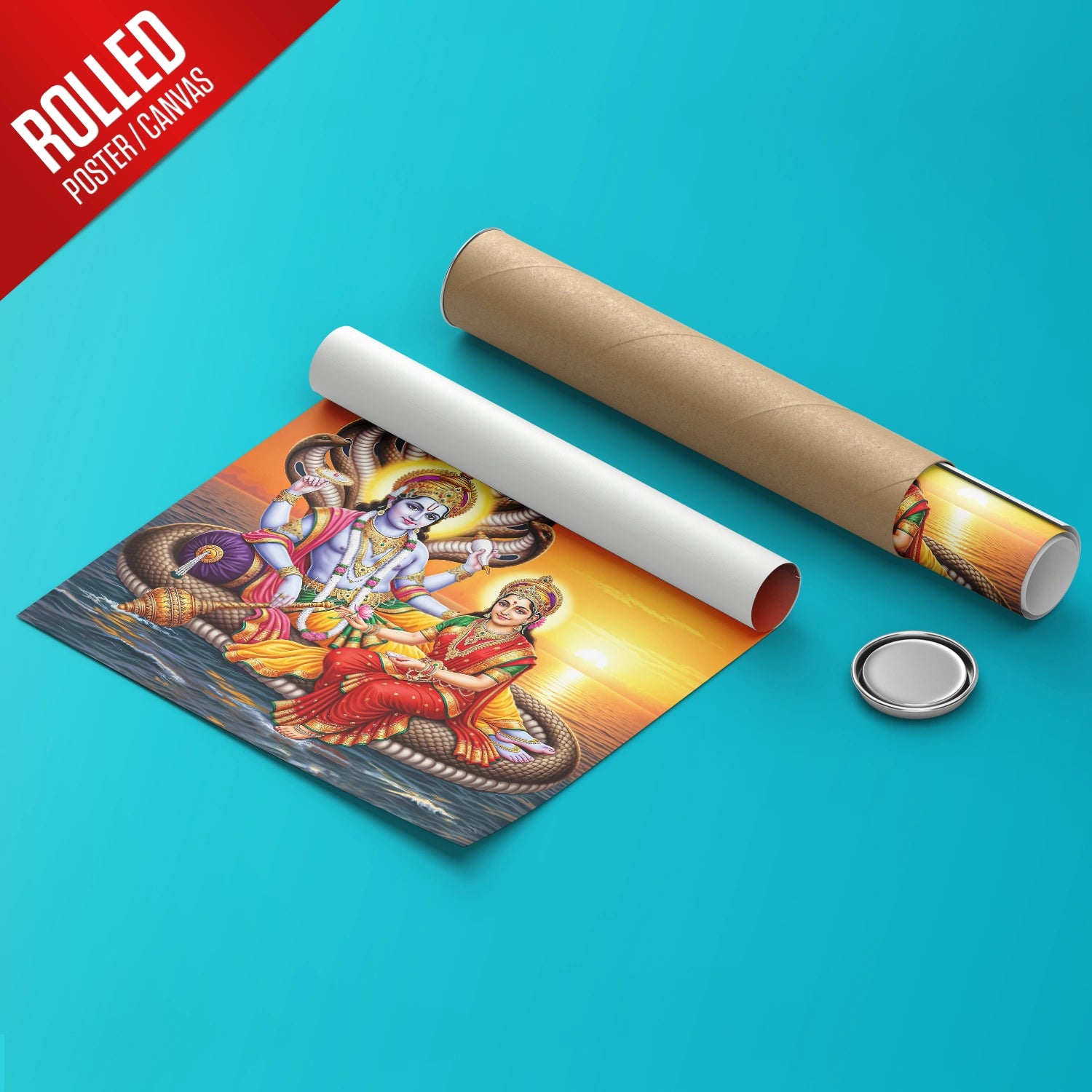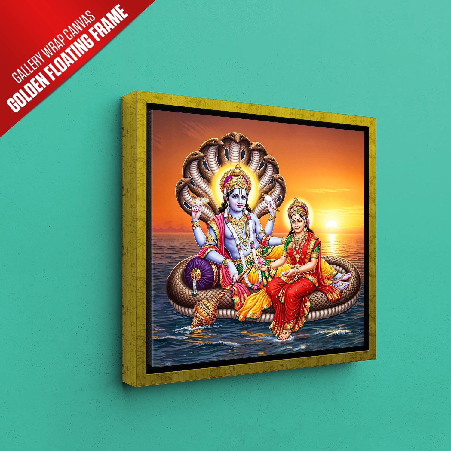 Bring divine serenity into your home with this stunning inspired artwork of Lord Vishnu and Goddess Lakshmi. Crafted with vibrant colors and intricate details, this piece captures the eternal bond of prosperity, protection, and spiritual harmony. Imagine the positive energy flowing through your space as the divine couple rests peacefully on a majestic serpent, set against a breathtaking sunset over the ocean. This artwork isn’t just a decoration; it’s a sacred symbol that awakens your inner peace and prosperity. Whether you’re a devout follower or a lover of spiritual art, this luxurious piece is perfect for your living room, prayer area, or as a heartfelt gift. Available in high-quality posters, elegant frames—including black, white, and dark brown—or a sophisticated gallery wrap canvas, you can choose the perfect style to match your decor.