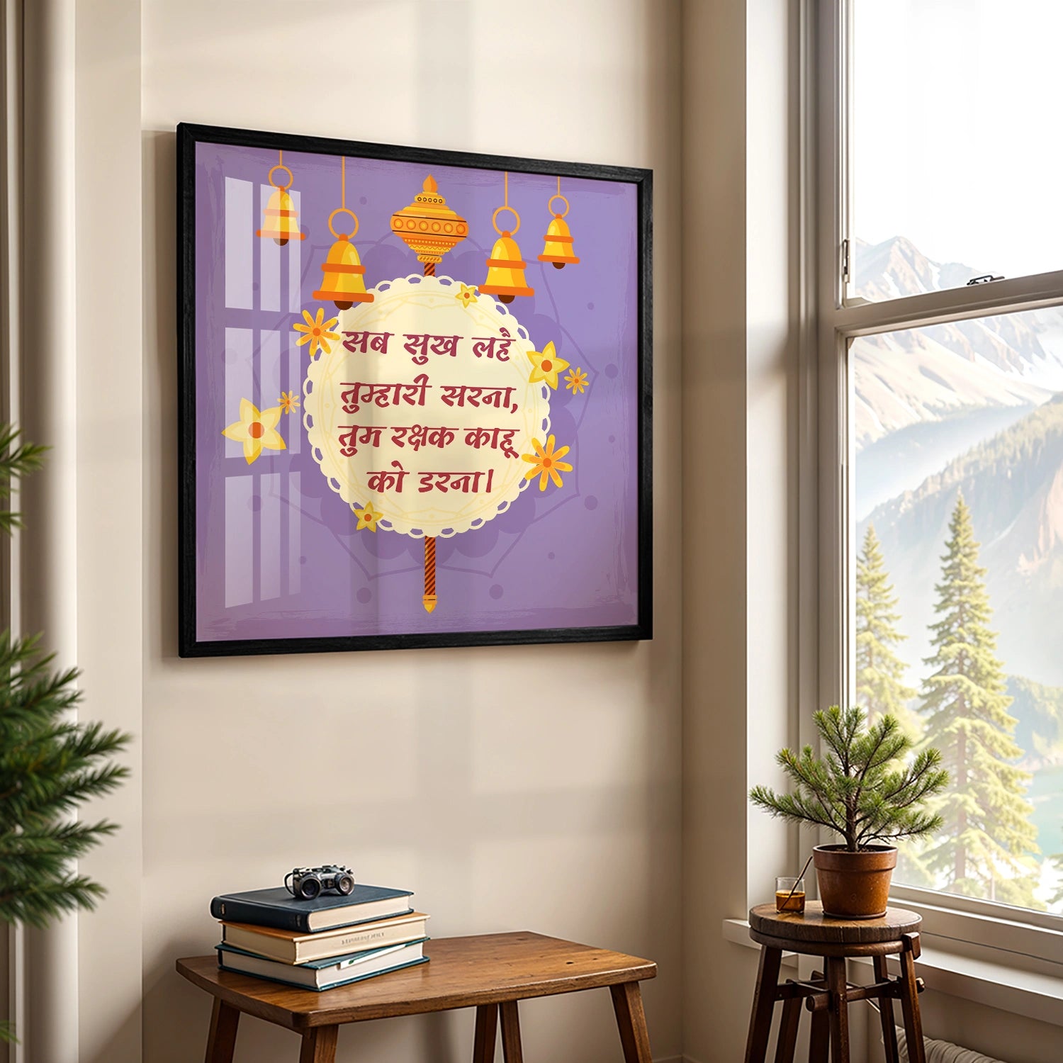 Durable wooden frame with strong support, ready to hang with hooks or wire on the back.