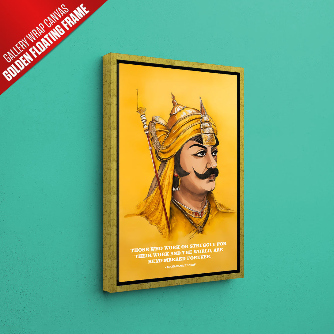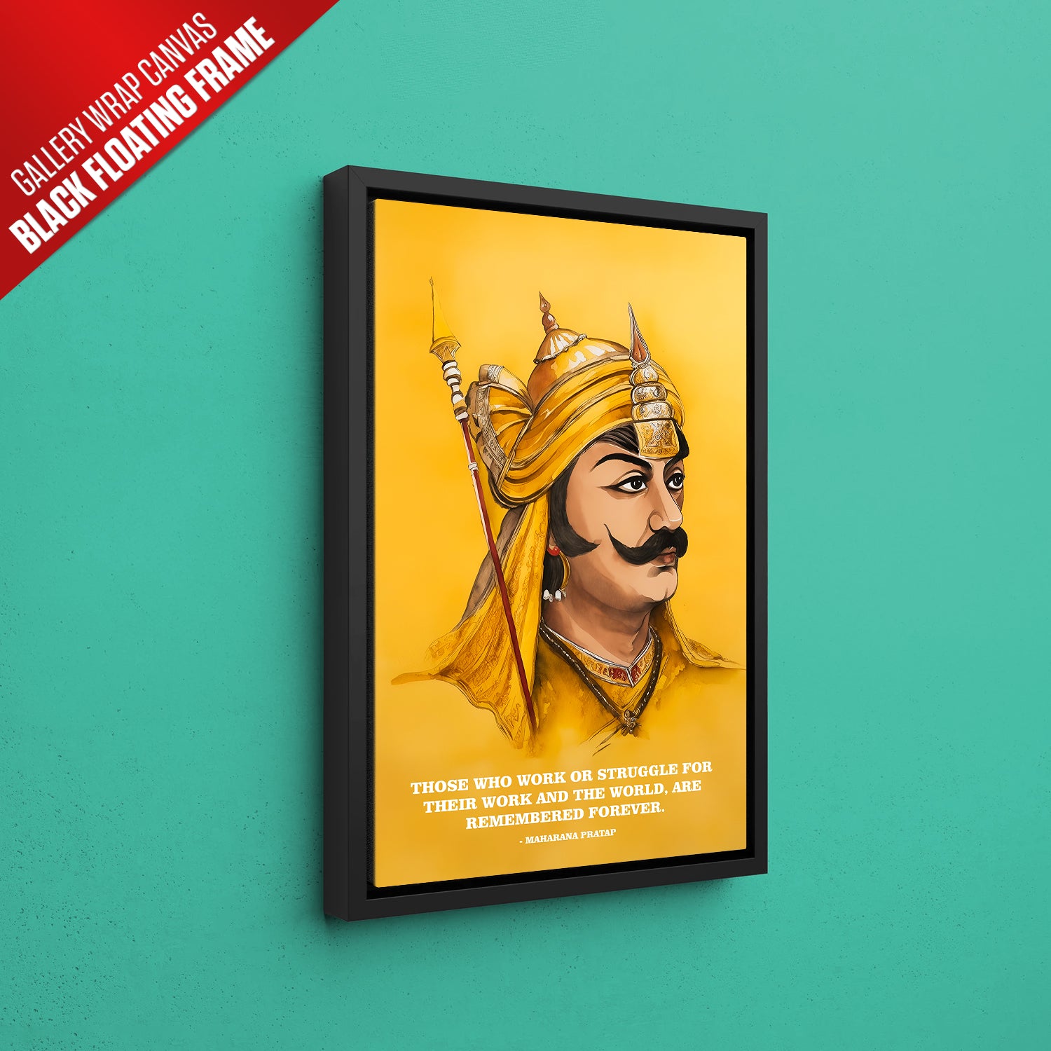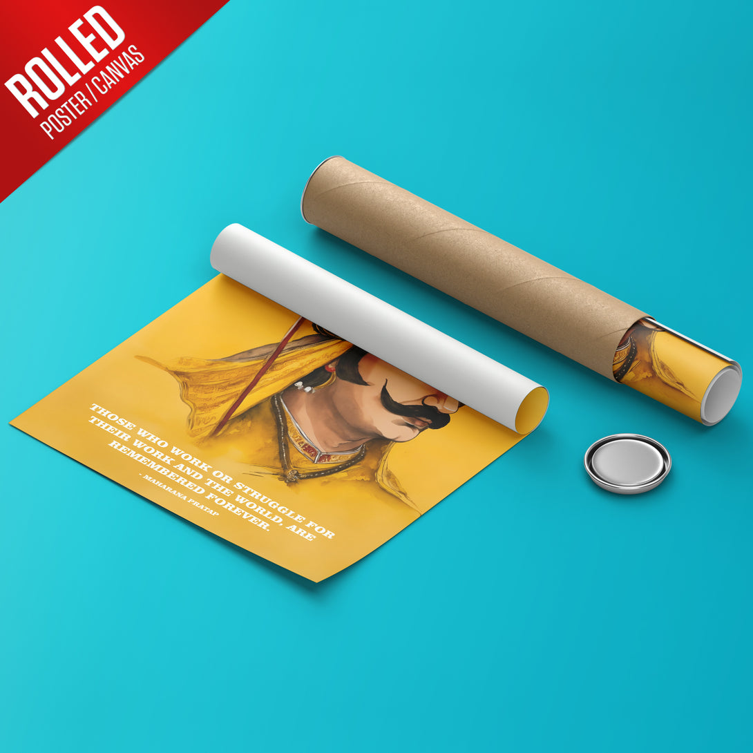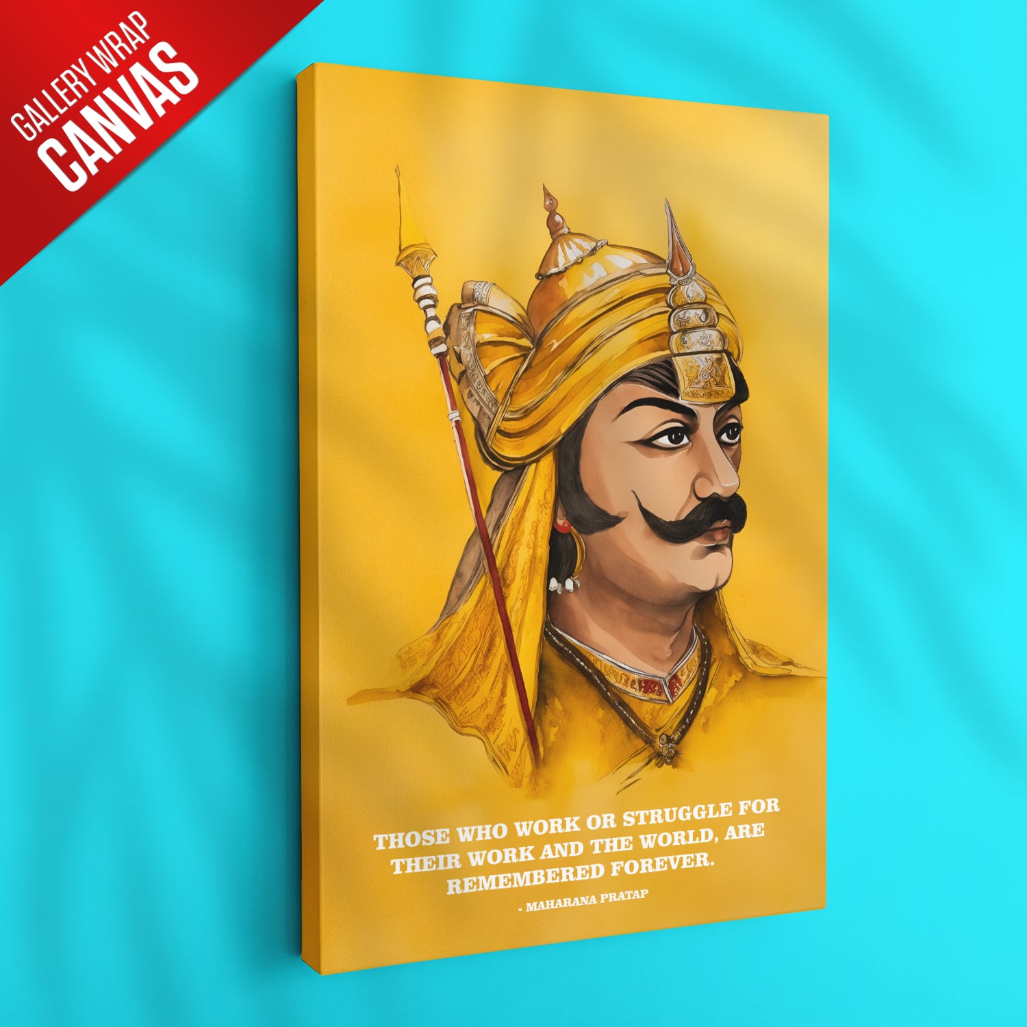 Celebrate the legacy of Maharana Pratap with this captivating artwork, available now at Ritwika's! This piece portrays the legendary Rajput warrior king in all his glory, his regal attire and unwavering gaze a testament to his enduring spirit. The artwork is further enriched by a powerful quote by Maharana Pratap himself, reminding us of the values he championed (Those who work or struggle for their work and the world, are remembered forever).