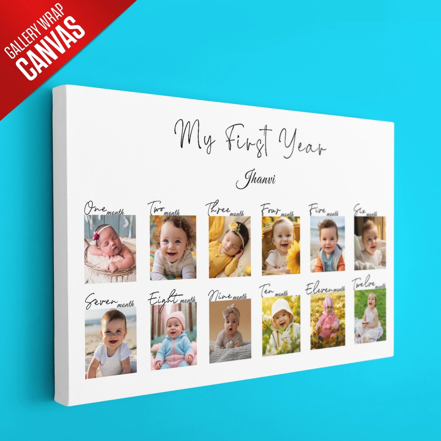 This unique masterpiece isn’t just decor; it’s a timeless keepsake that adds a personal touch to your home or the nursery. Available in both elegant frames and vibrant canvas prints, this artwork comes in multiple sizes to suit any space. Perfect for doting parents, grandparents, or friends searching for a meaningful first birthday gift, this collage artwork is designed to leave a lasting impression. Imagine the joy on the parents’ faces when they receive this thoughtful, customized treasure at the birthday party!
