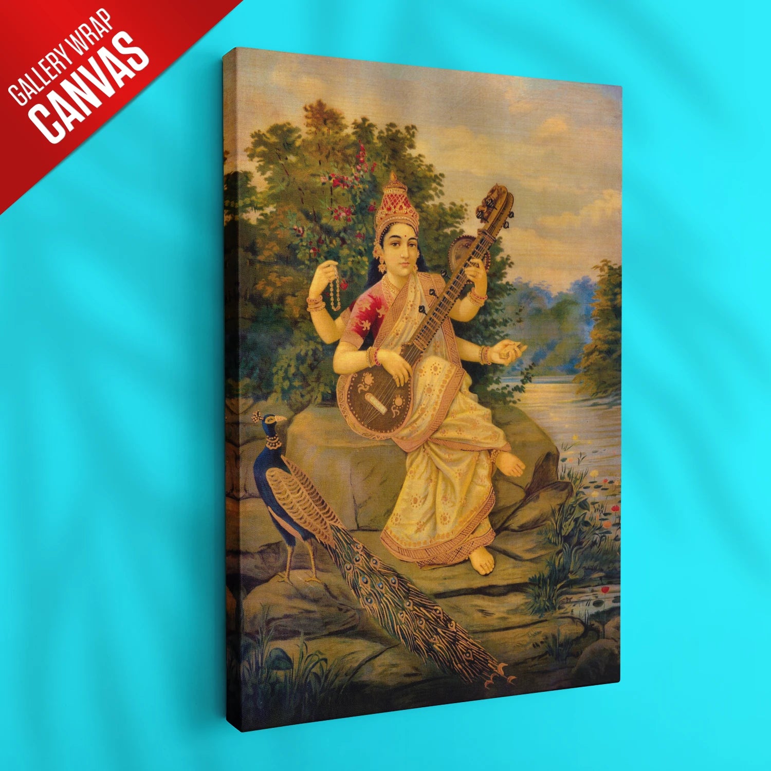 Available in poster prints, elegant frames, and gallery wrap canvas, this artwork ensures that every intricate detail of Raja Ravi Varma’s original creation is preserved in its natural authenticity. The high-quality reproduction maintains the colors and textures without any modification, bringing the divine essence of Saraswati into your space in its truest form.