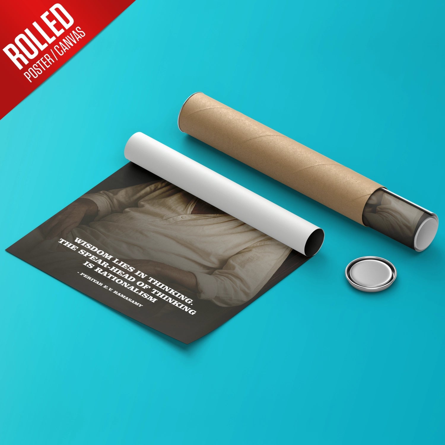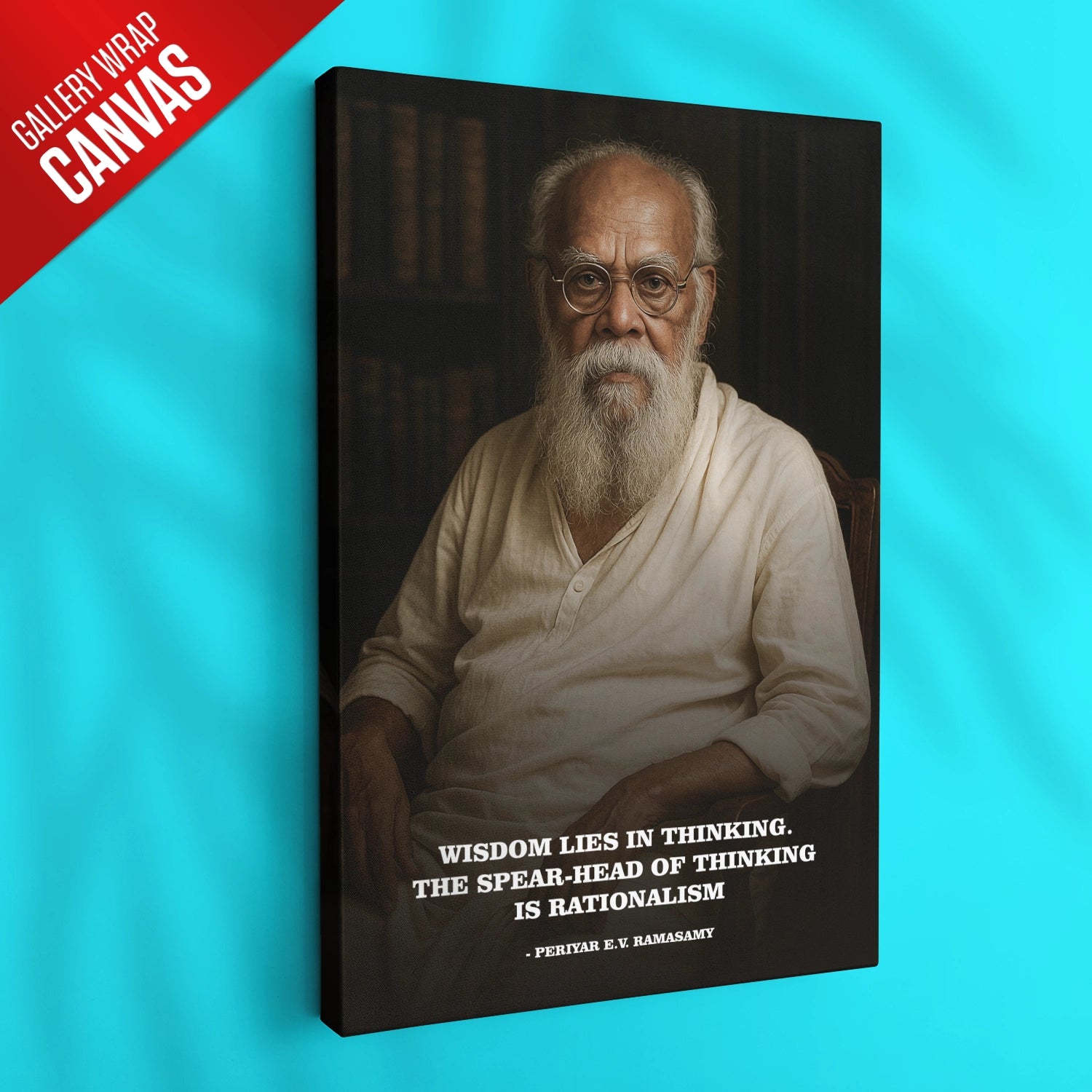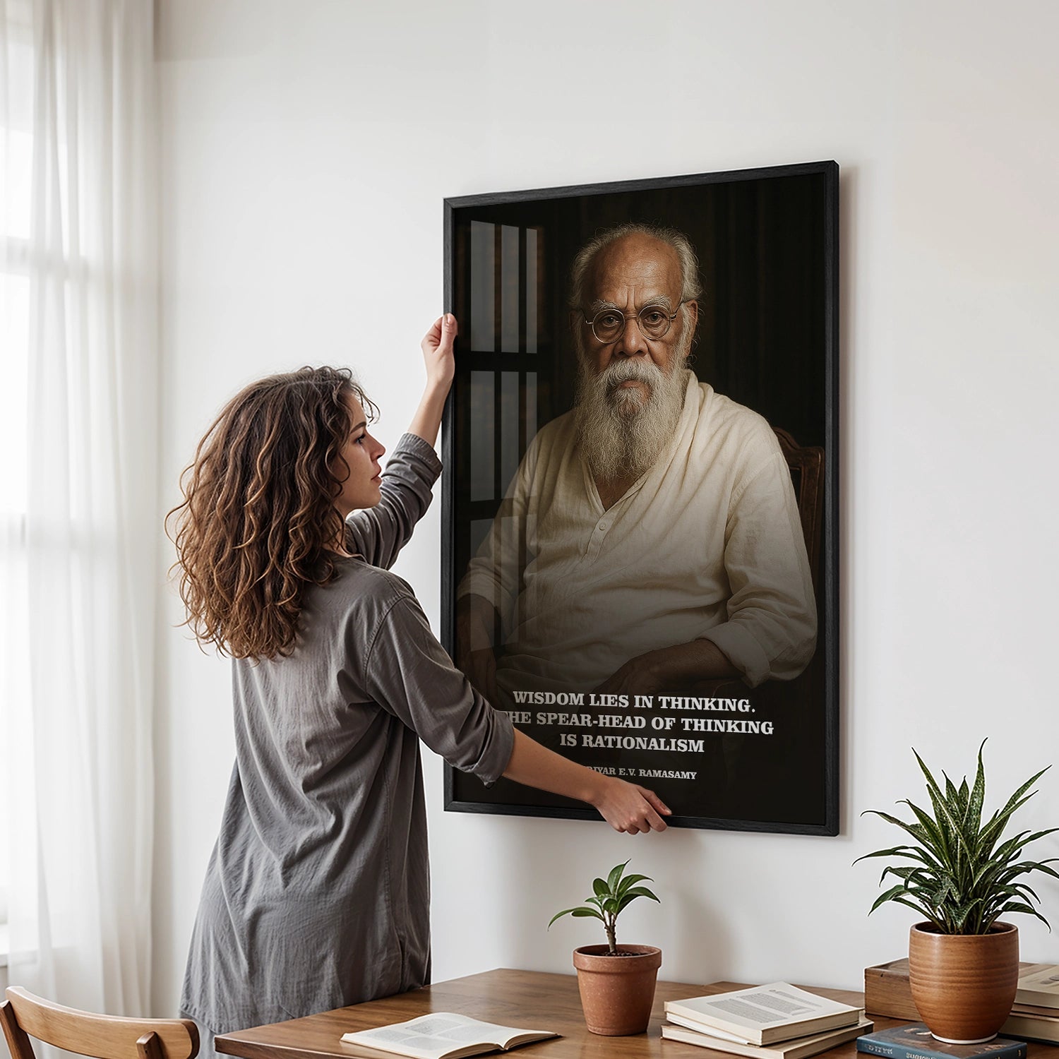 Bring the powerful legacy of Periyar EV Ramasamy into your home or office with this captivating artwork. Crafted with love and inspired by his unwavering dedication to social justice and equality, this piece is more than just a decoration — it's a symbol of revolutionary thought and unbreakable spirit. Whether you choose a luxurious gallery wrap canvas, a classic poster on rolled paper, or a sophisticated frame in black, white, or dark brown, this artwork will elevate your space and spark meaningful conversations. Every fan of social reform and human rights must own this inspiring piece to remind themselves of the importance of rational thinking and relentless pursuit of justice. Gift it to someone special or keep it as a daily source of motivation—either way, it’s a valuable addition to any meaningful collection.