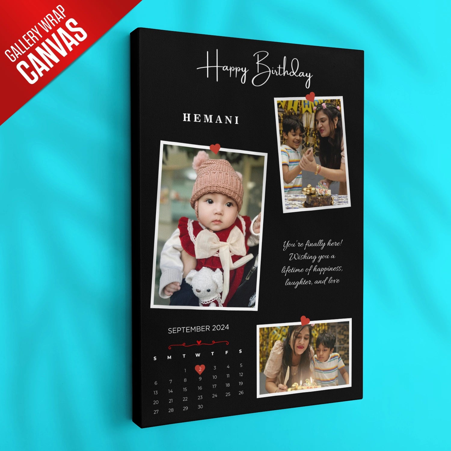 Available in both framed and gallery-wrapped canvas styles, this artwork is a stunning addition to any home decor and an unforgettable gift for friends and family. Celebrate your most treasured moments with Ritwika’s 3-Photo Calendar Collage—a timeless keepsake that brings joy and memories to life.