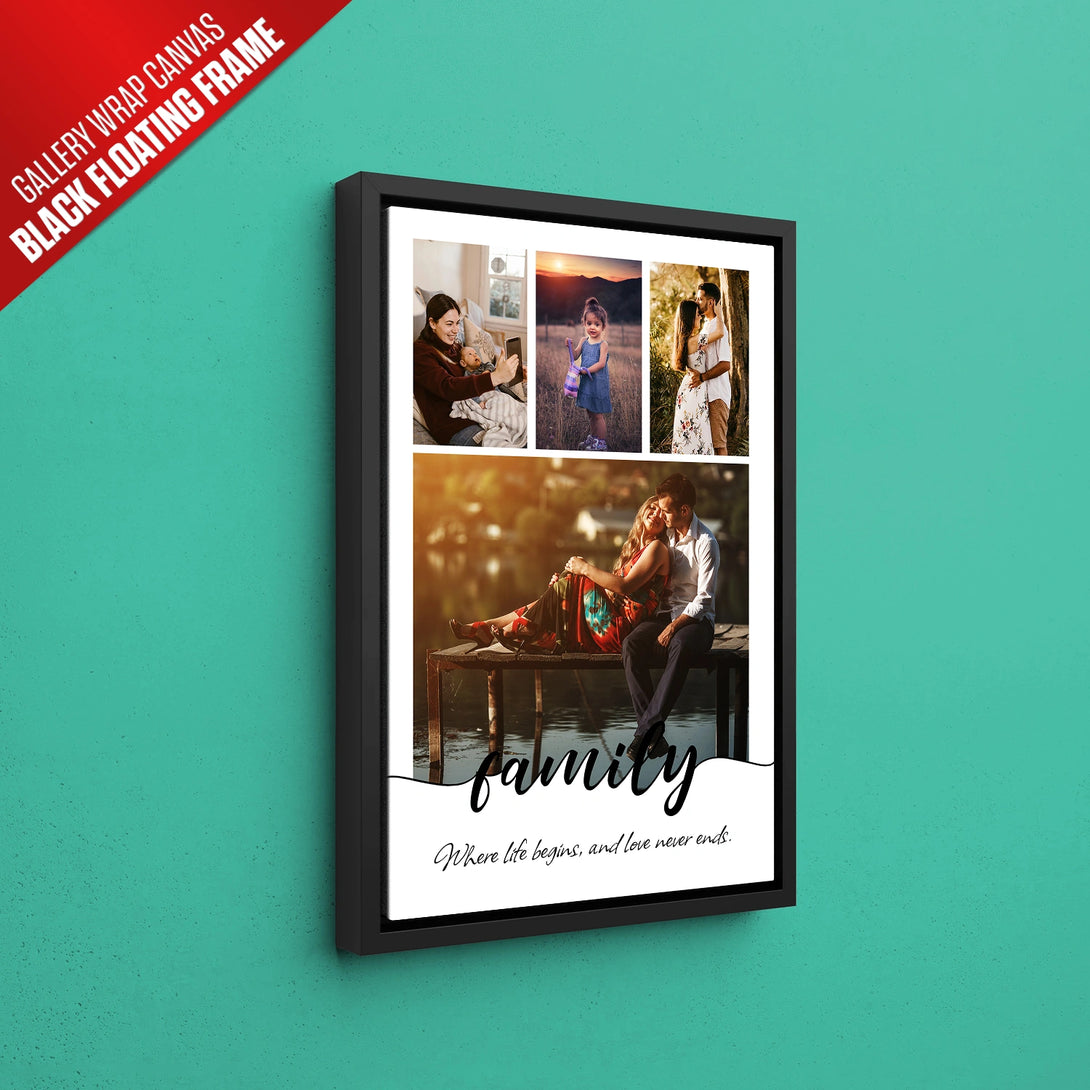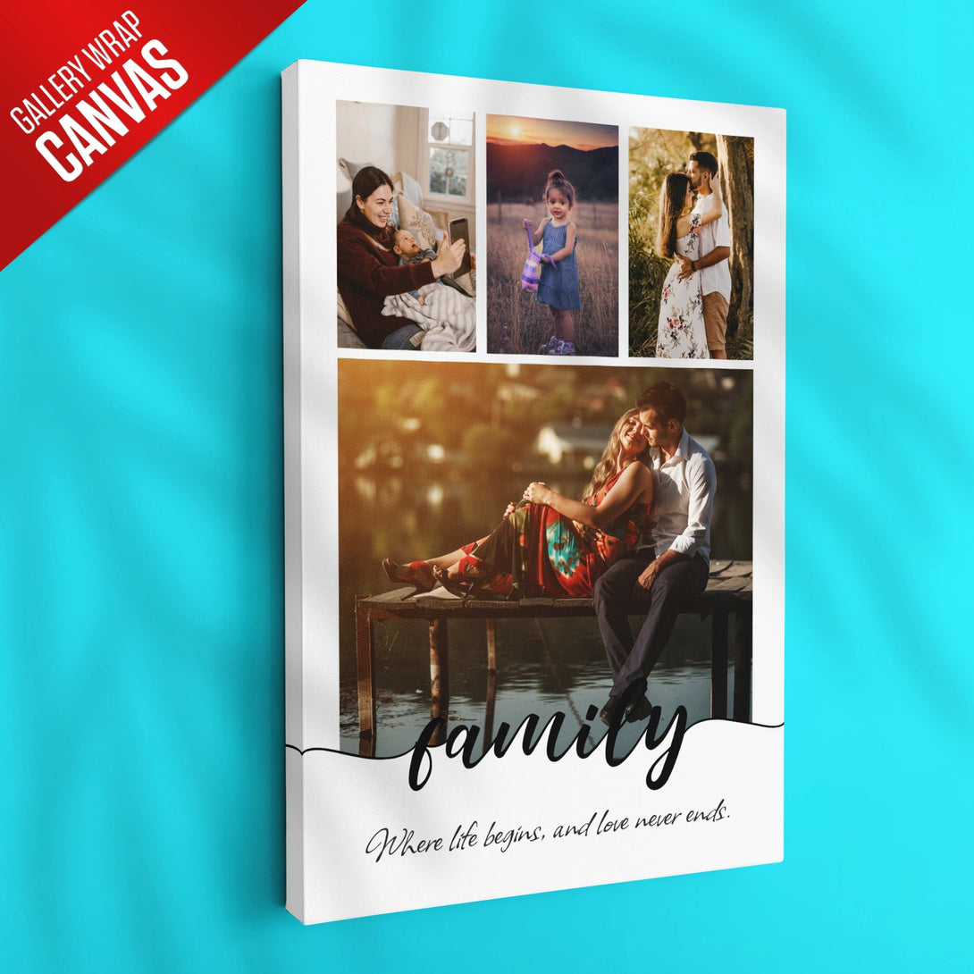 A personalized family collage with 4 pictures beautifully showcases the love and togetherness of family life. Each photo captures a special moment, whether it's a holiday gathering, a family milestone, or simple everyday joy. The images come together to tell a story of support, warmth, and connection that family offers. This collage is a meaningful reminder of the bonds that unite, turning cherished memories into a lasting tribute to the ones who make life so special. Perfect for celebrating family and the love shared through the years.