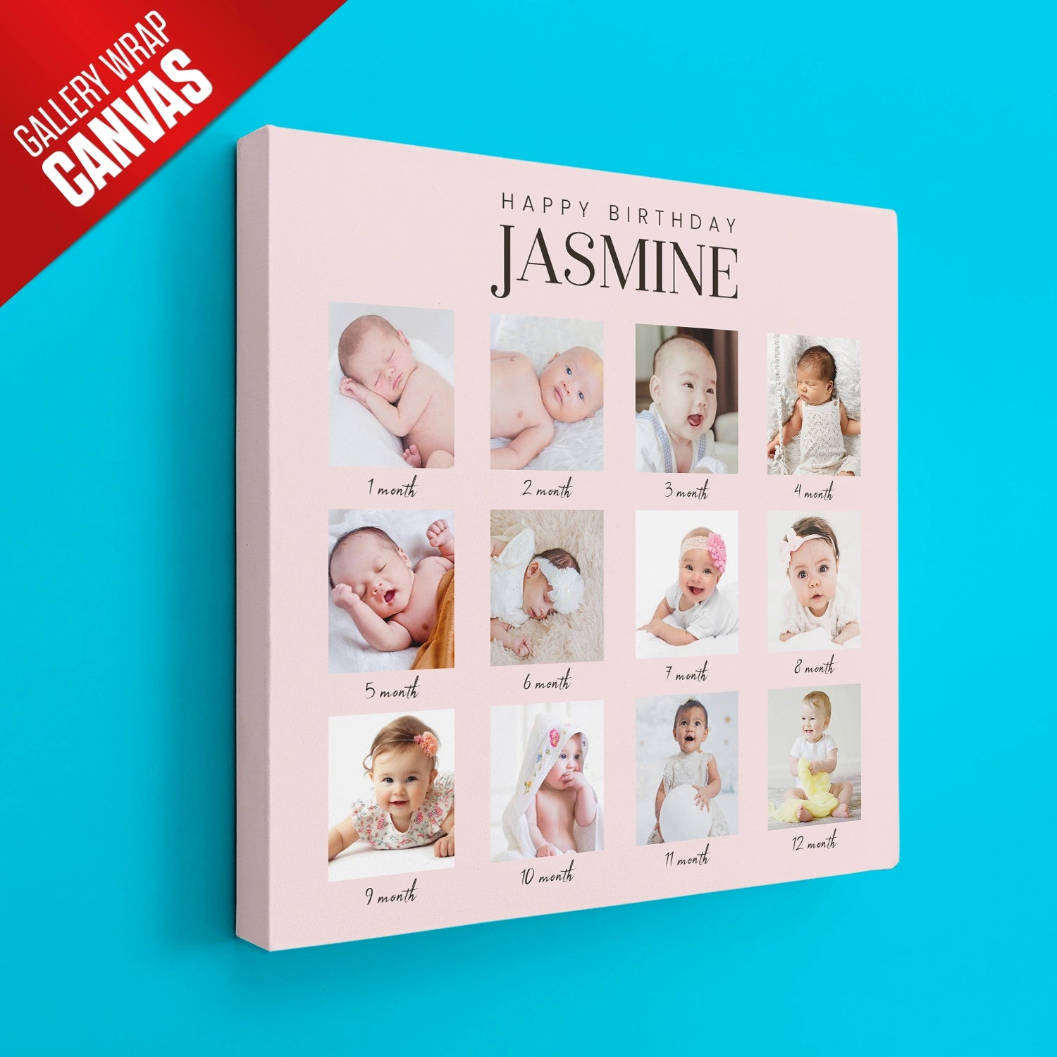 Celebrate the incredible journey of your little one’s first year with our Baby’s First Year 12-Photo Collage! This unique collage captures each monthly milestone, from the precious moments of the first month to the joyful smiles of the twelfth, showcasing how your baby has grown and changed over their first year. Perfectly arranged in month-by-month order, this artwork creates a beautiful timeline of memories that will warm your heart every time you see it.