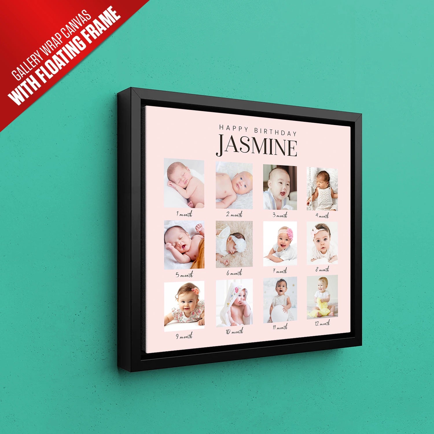 Personalized with your child’s name, this collage becomes a timeless keepsake that highlights their one-of-a-kind journey. It’s the ideal way to commemorate the unforgettable moments of babyhood and create a cherished memory that you and your family can enjoy for years. Each photo tells the story of a precious stage in your baby’s life, making this artwork a wonderful reminder of just how special each month has been.
