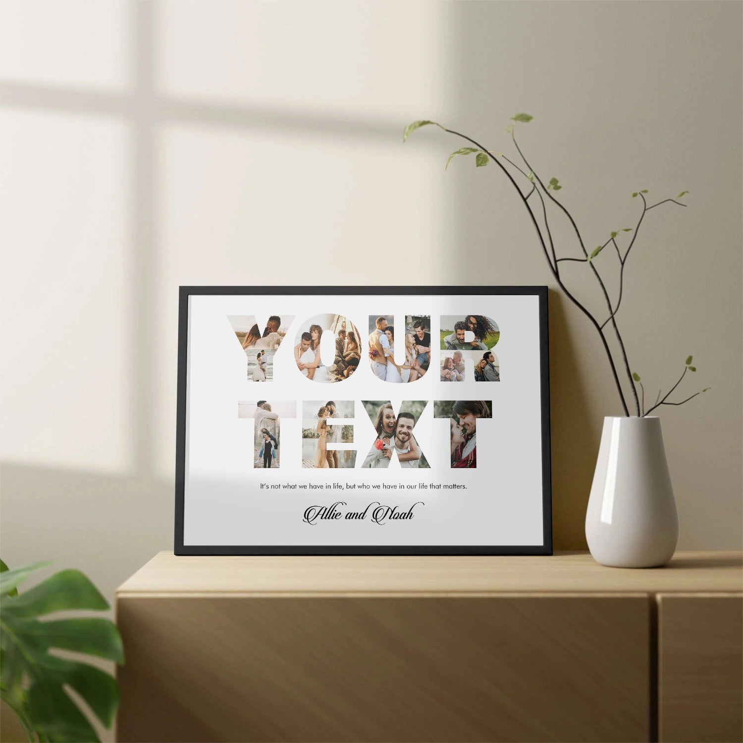 Whether it's a heartfelt message, inspirational quote, or cherished memory, our artwork transforms your words and images into a captivating work of art. Perfect for home decor, gifting, or as a personal keepsake, this customizable artwork is a beautiful way to showcase your story. Order now and let us bring your vision to life in a truly artistic form.
