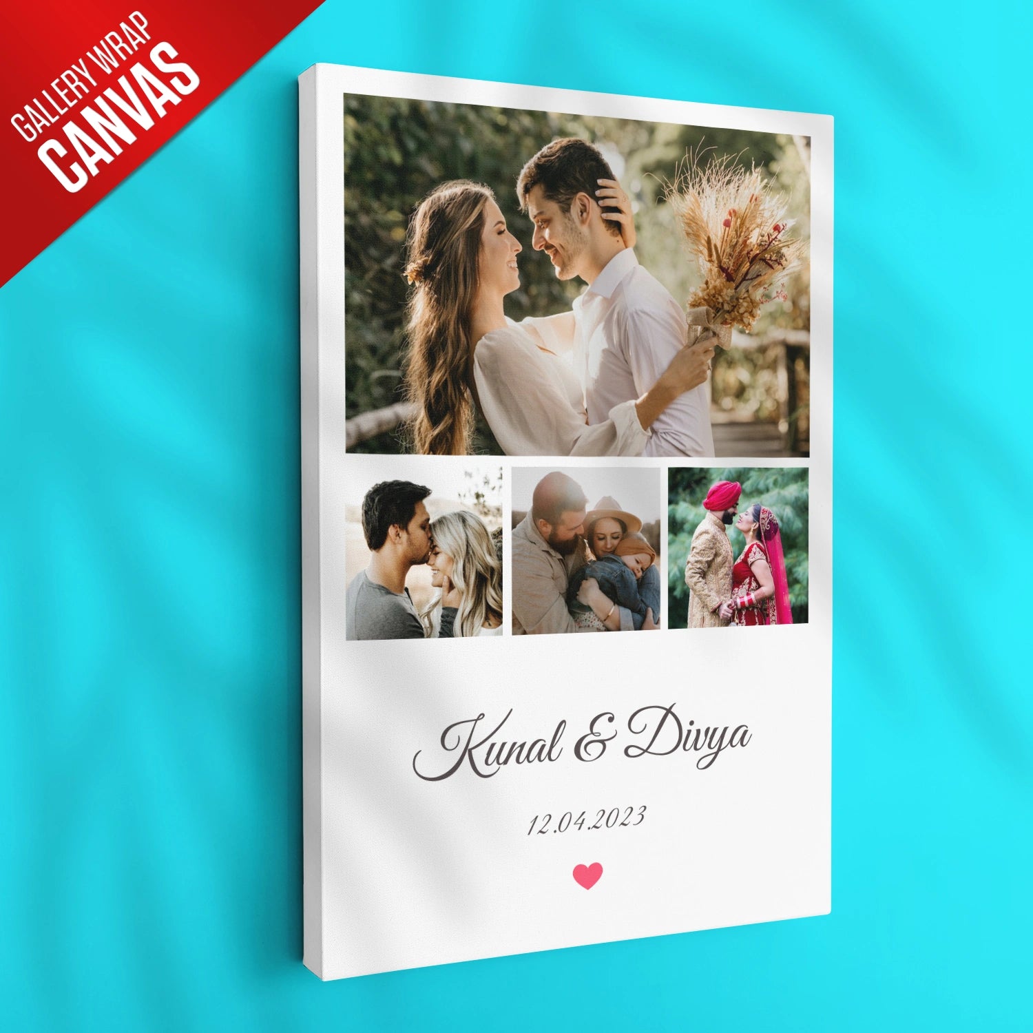 Elevate your couple goals with our personalized photo collage, the perfect way to express love and celebrate milestones at Ritwika's. Whether you're newly married or commemorating an anniversary, our unique product allows you to customize with the couple's names, special date, and 4 best photos.