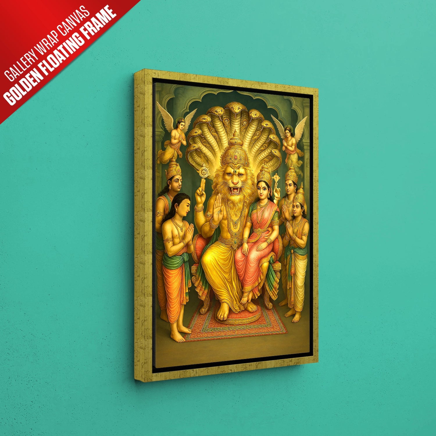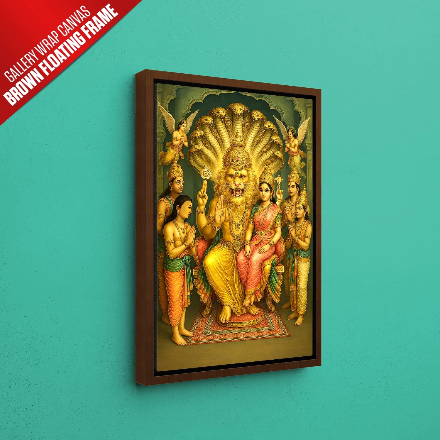 Whether you’re a devout follower of Lord Narasimha or simply someone who appreciates Vedic art, this painting is more than décor – it’s a source of positivity and divine vibration. Perfect for your pooja room, meditation area, or living space, it creates an aura of safety and serenity. Plus, it makes an ideal gift for housewarmings, festivals, or spiritual milestones. Choose from gallery wrap canvas, black, white, or dark brown framed prints to match your space and aesthetic.