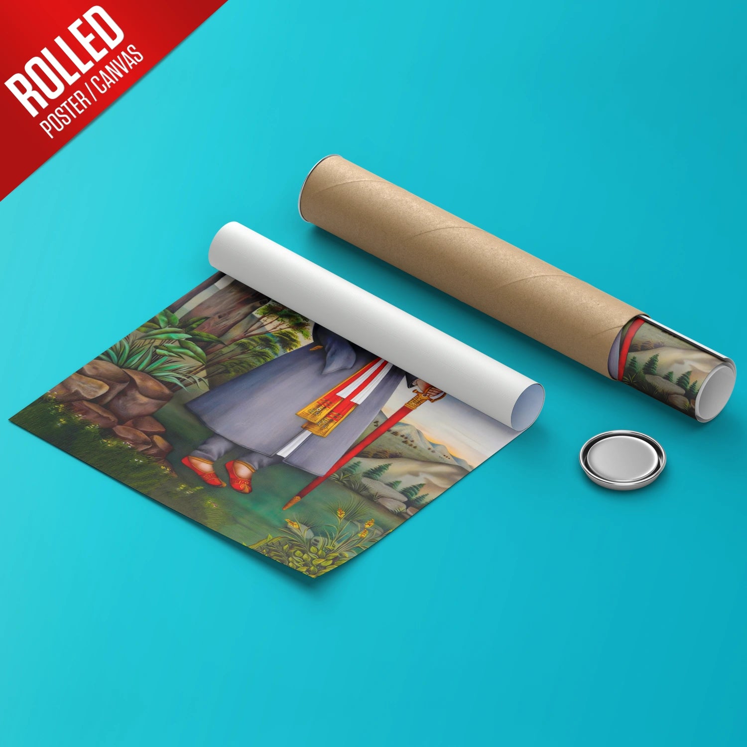 Rolled posters or canvas are artworks sent without a frame, safely packed in a tube, ready for you to frame locally as you like.
