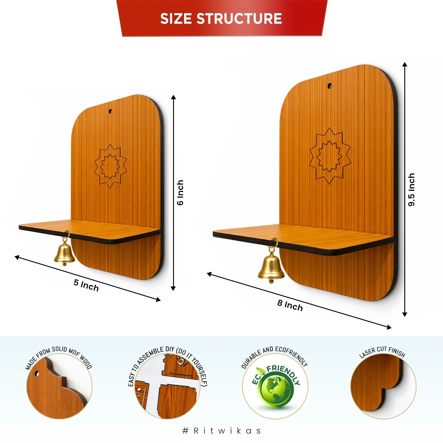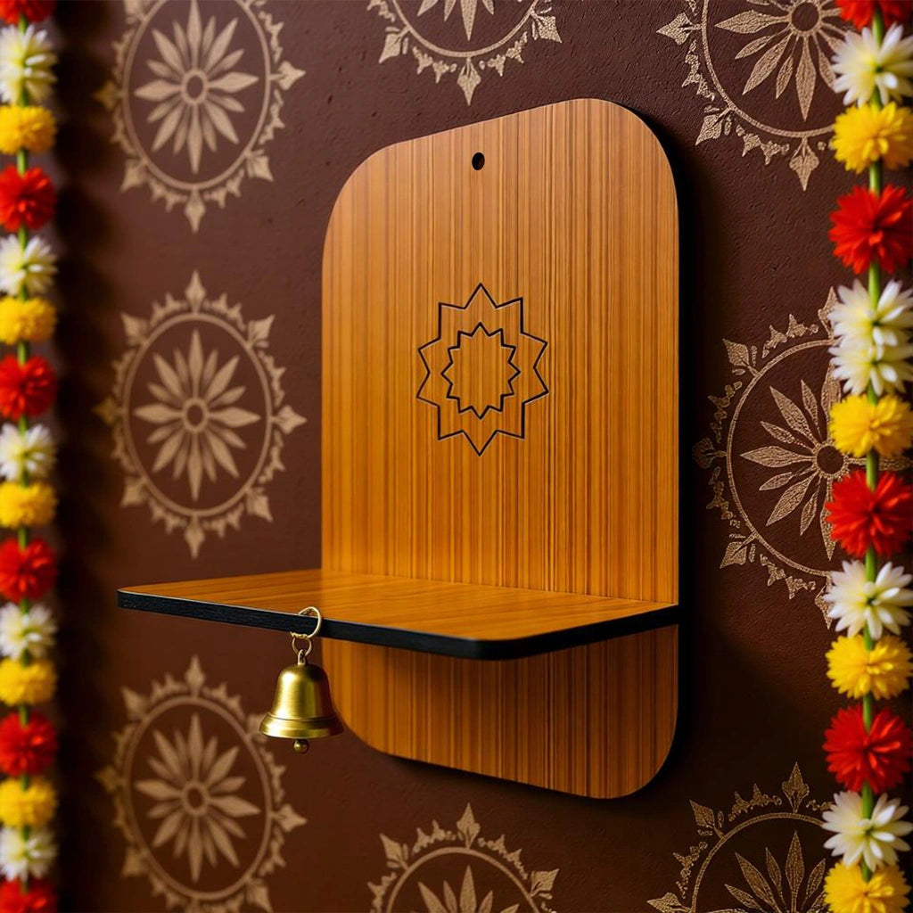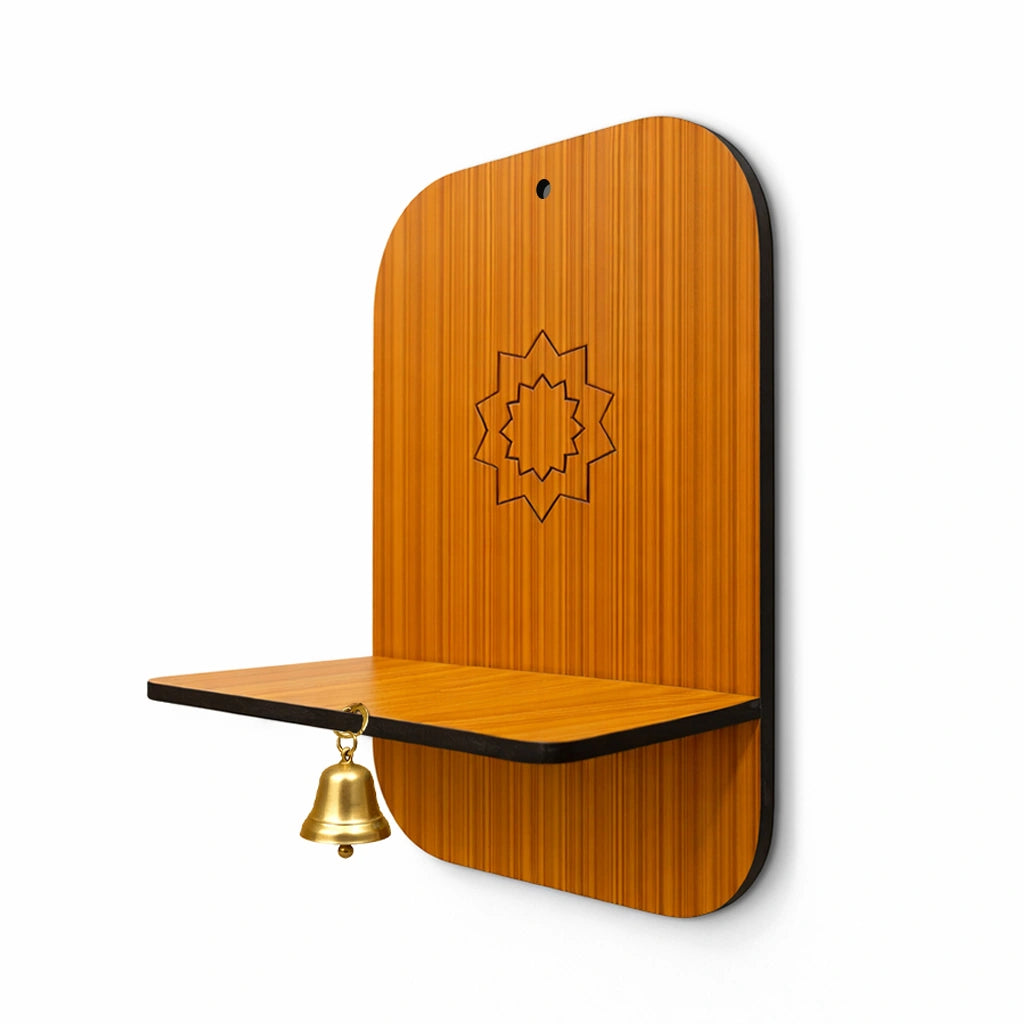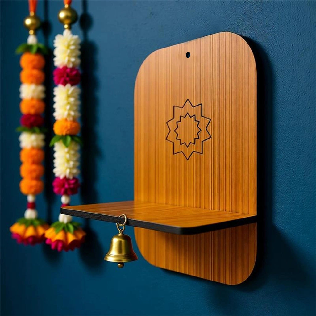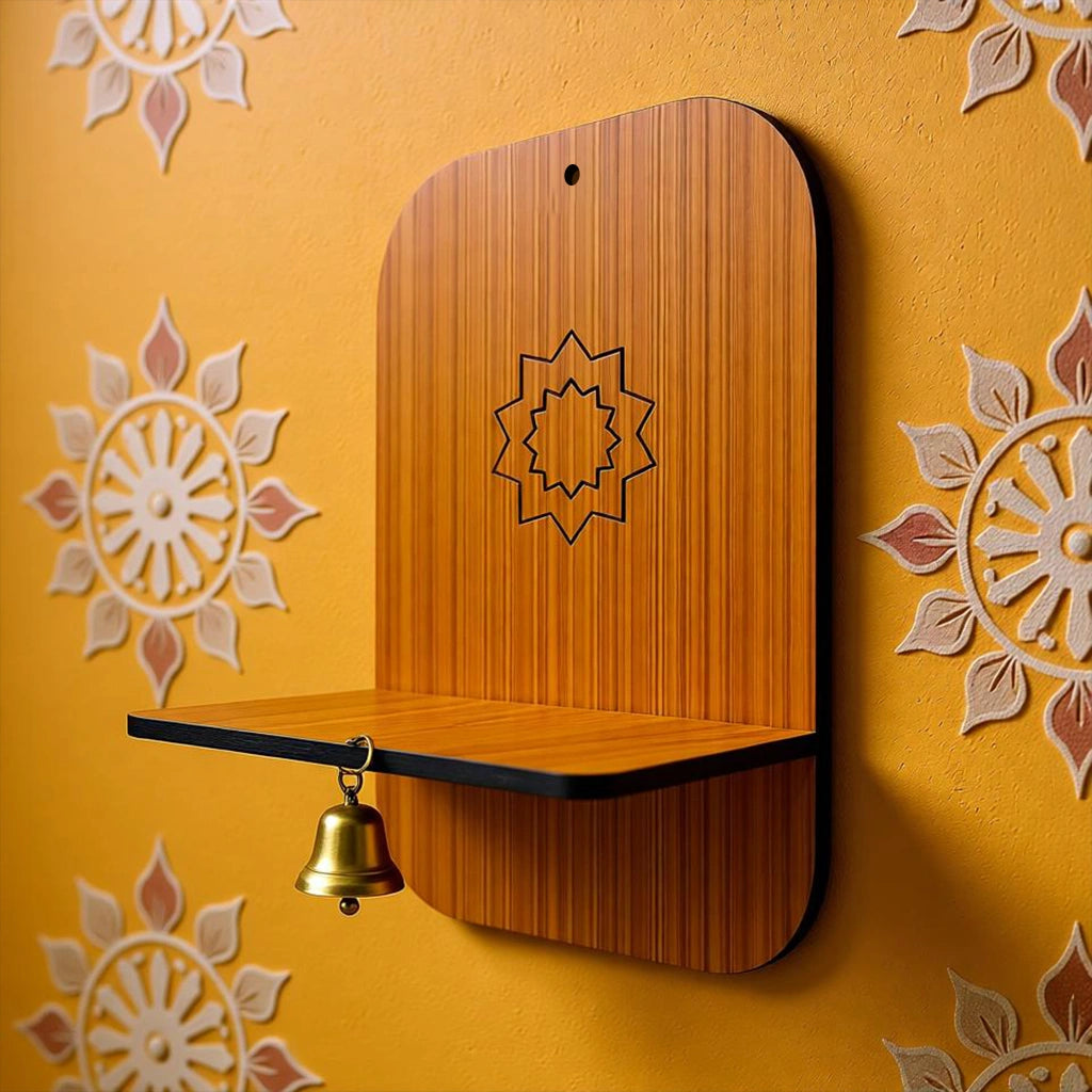 Featuring the unique Rectangular Design, this altar is carved from premium-quality wood with a rich, durable finish that complements any interior decor. Whether you are setting up a dedicated pooja room or a small prayer corner in your apartment, this wall-mounted shelf provides a sturdy and beautiful platform for your deities. The included brass bell adds a touch of traditional charm, bringing the temple atmosphere right into your living space.