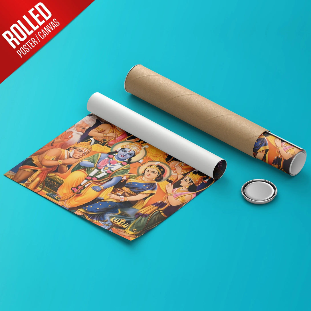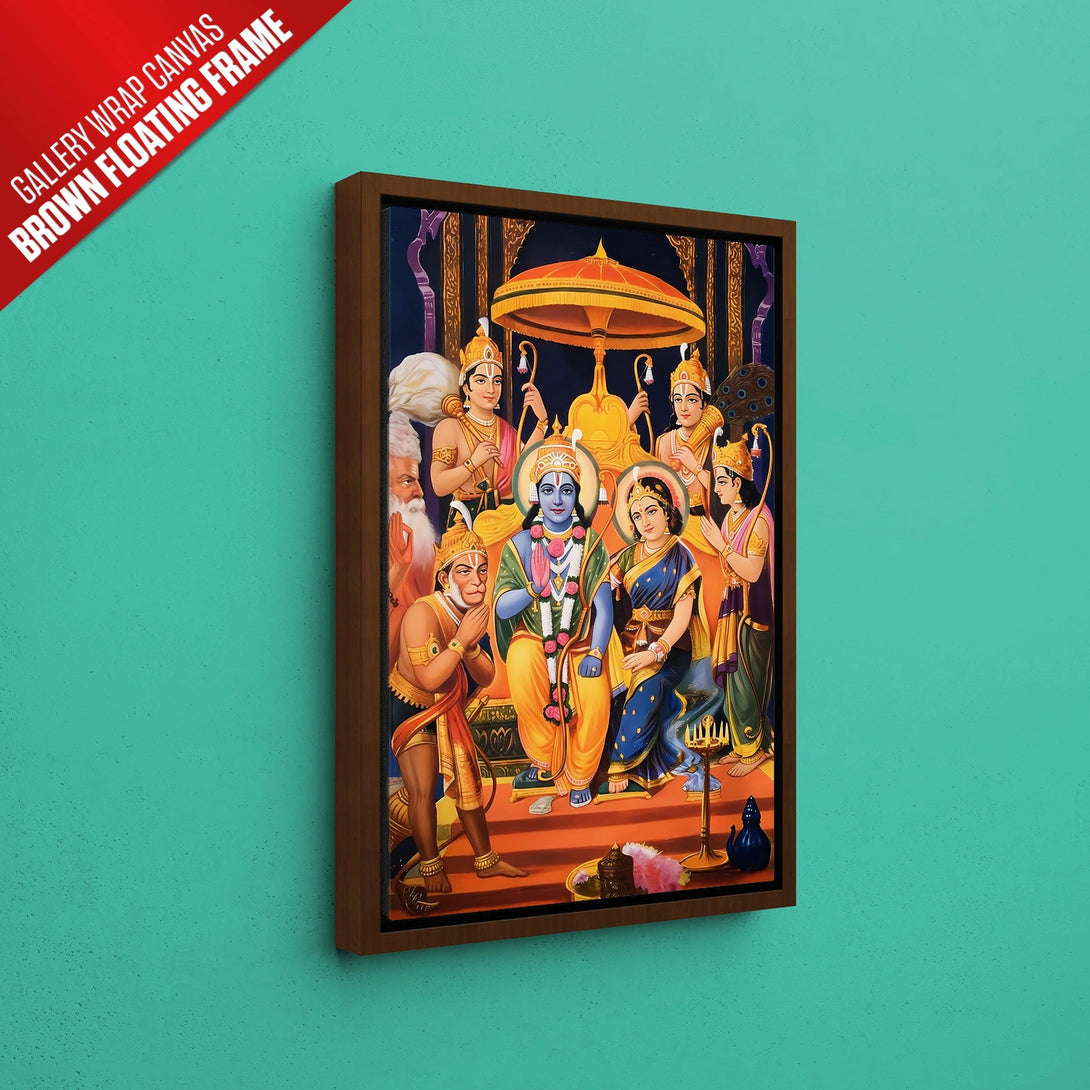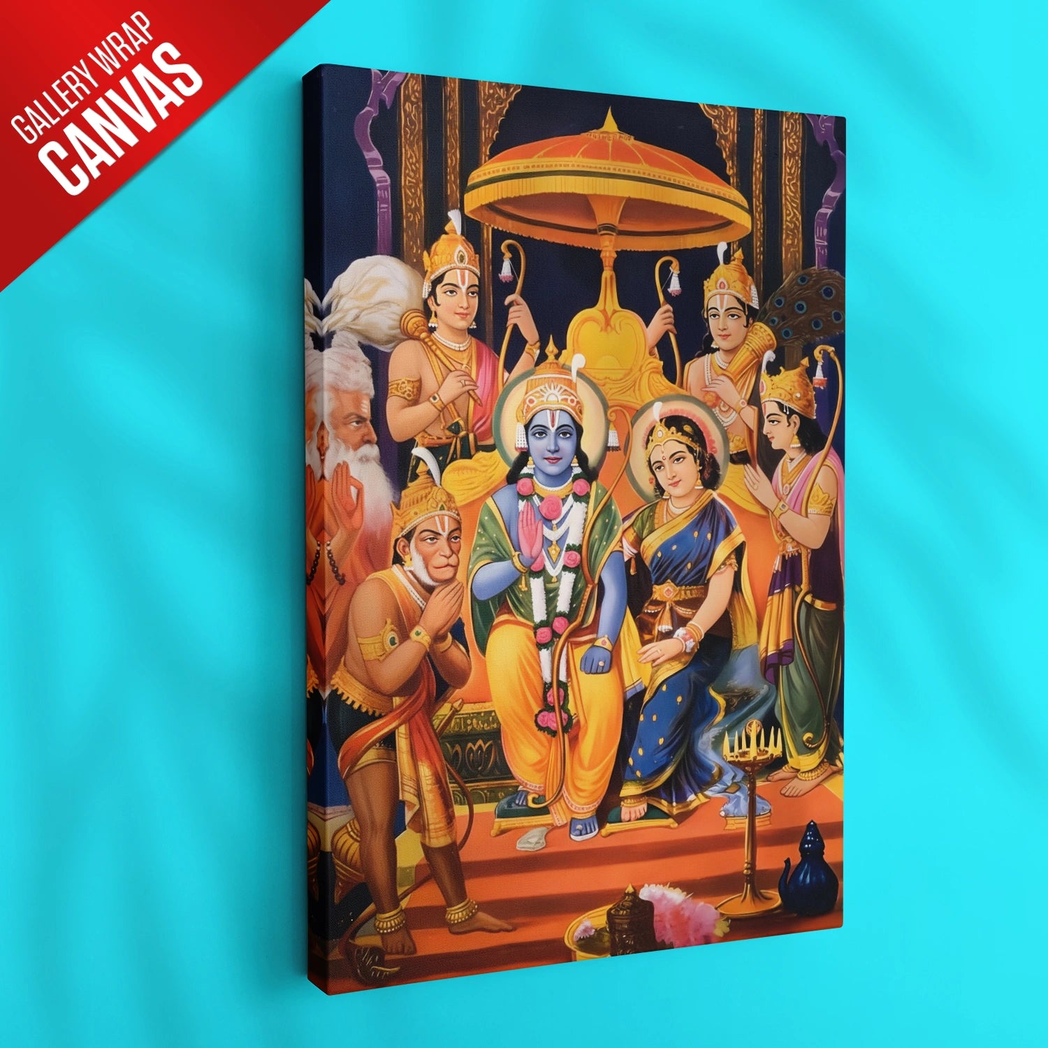 Step into divine serenity with Ram Darbar Divine Painting, a sacred portrayal of Lord Ram and Goddess Sita seated gracefully on their throne, surrounded by Lakshman, Bharat, Shatrughna, and the ever-devoted Hanuman Ji. This timeless scene celebrates the eternal values of love, loyalty, righteousness, and unity, radiating the pure essence of Sanatan Dharma. Each detail, from the golden throne to the tranquil expressions, has been artistically crafted to capture the celestial glory of Ayodhya’s divine court.