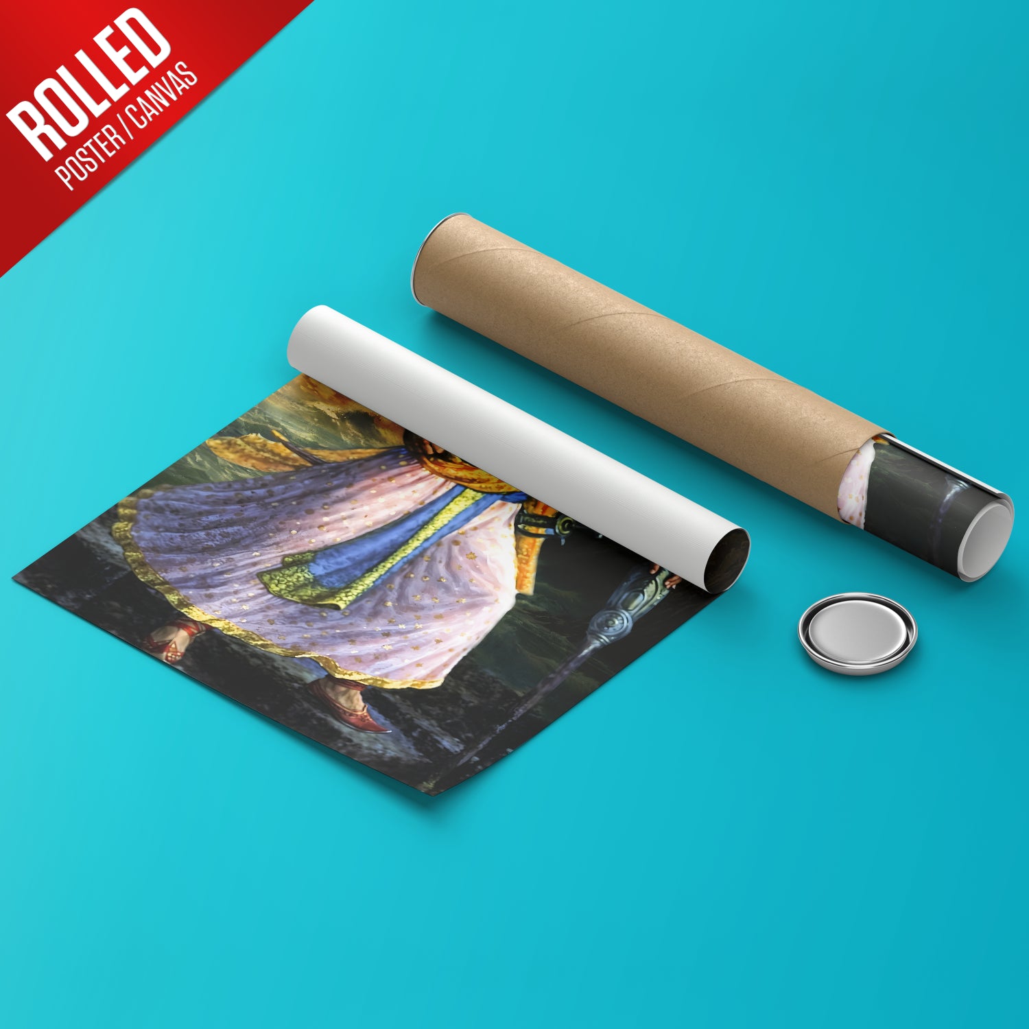 Rolled posters or canvas are artworks sent without a frame, safely packed in a tube, ready for you to frame locally as you like.
