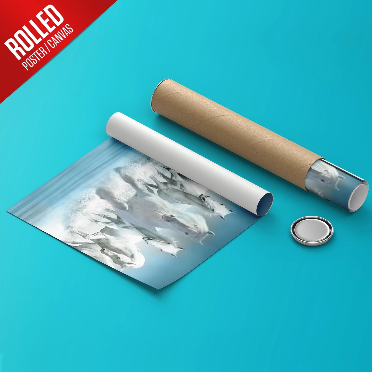 Rolled posters or canvas are artworks sent without a frame, safely packed in a tube, ready for you to frame locally as you like.