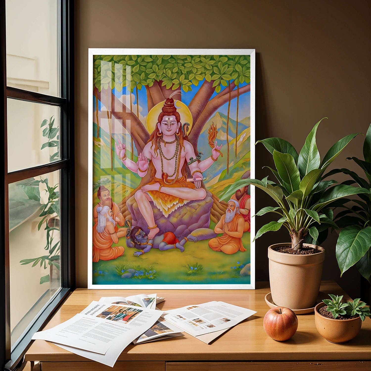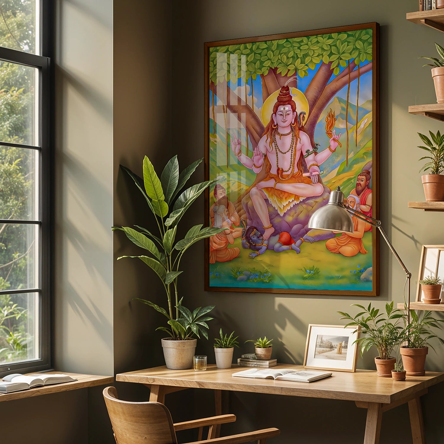 Bring a touch of divine inspiration into your home or office with this captivating Dakshinamurthy artwork—an unmissable addition that promises to enhance your spiritual journey and transform your environment into a sanctuary of peace and wisdom. Order today and experience the profound power of divine art!