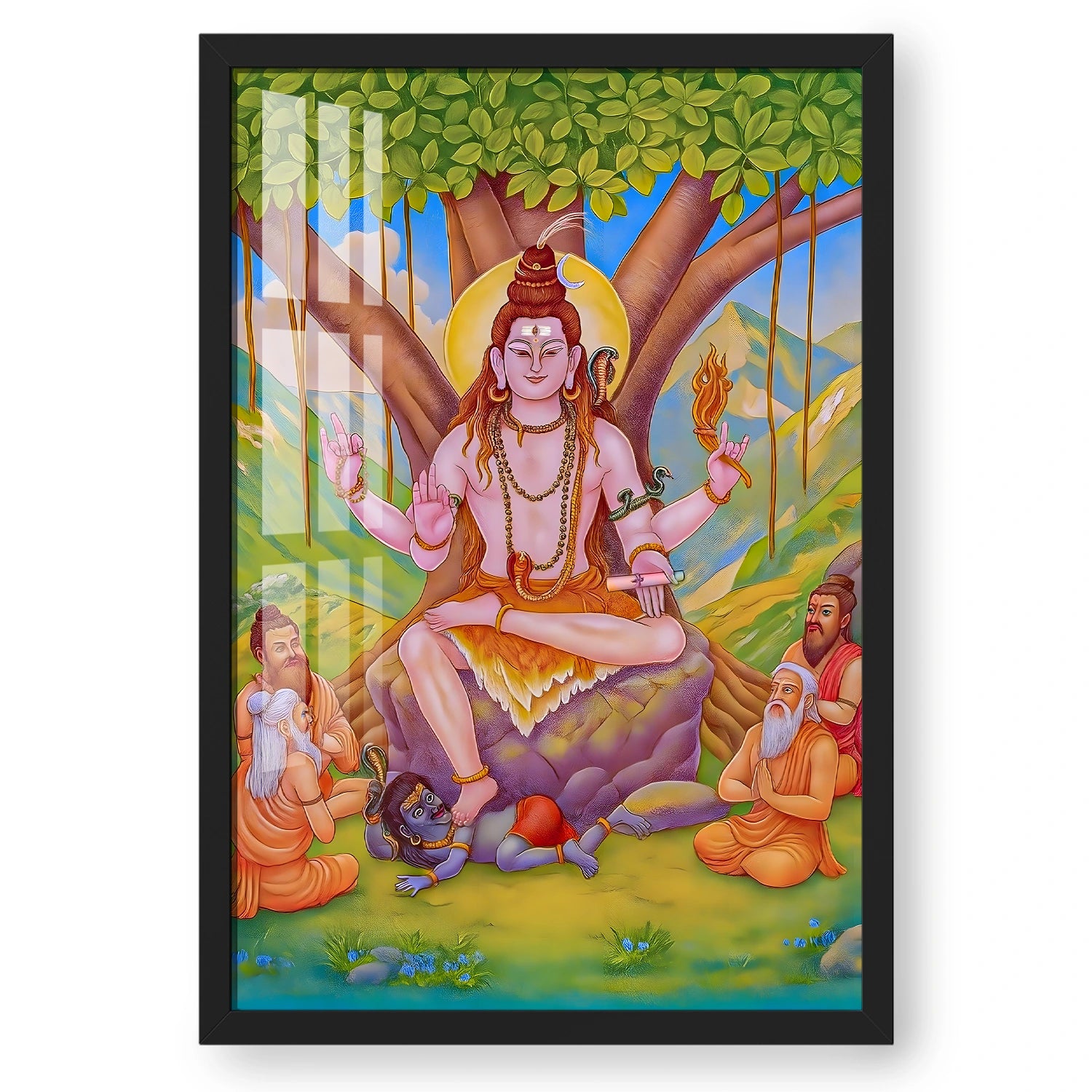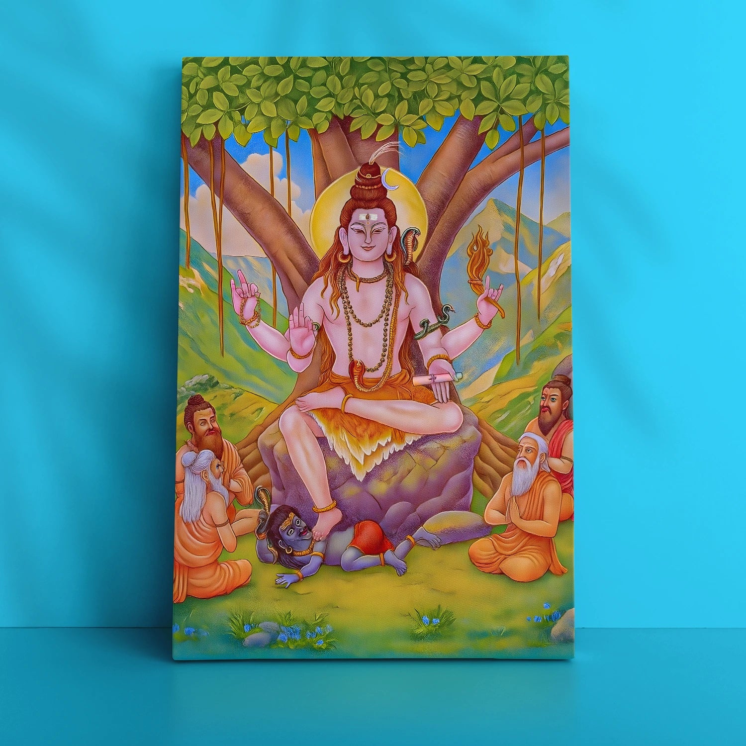 Experience the divine wisdom of Shiva as Dakshinamurthy with this exquisite artwork that transforms your space into a sanctuary of spirituality.