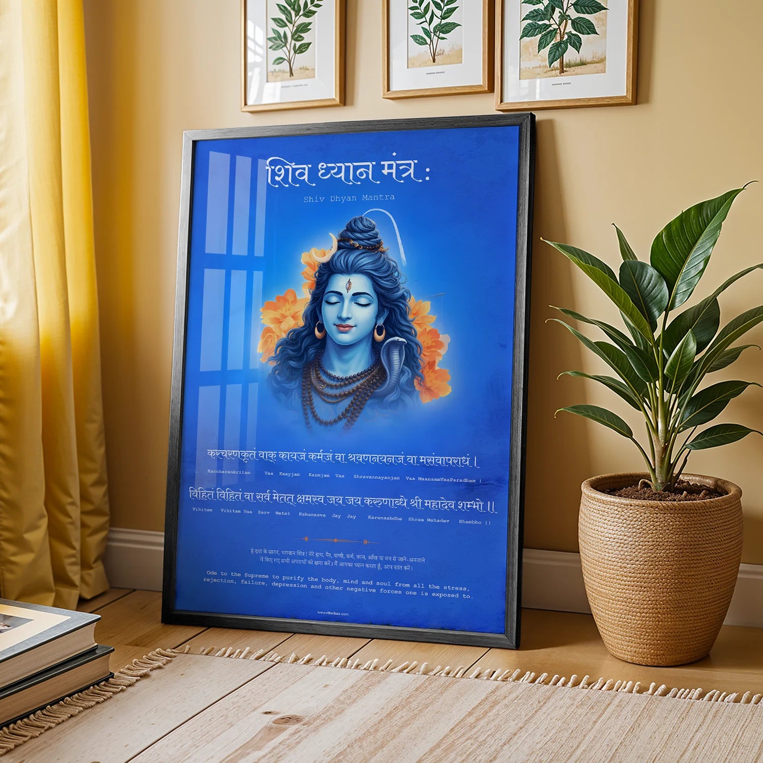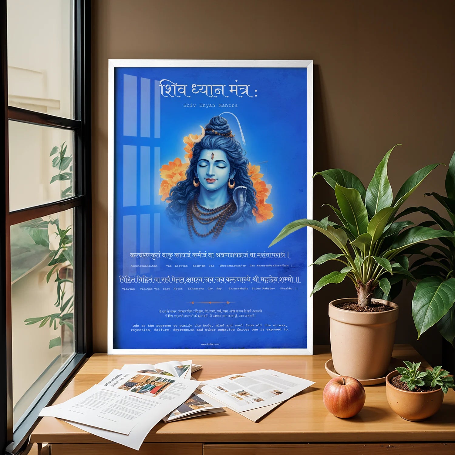 This serene Shiv Dhyan Mool Mantra artwork is more than just wall décor—it is an invitation to slow down, breathe, and reconnect with inner peace. Inspired by Lord Shiva in deep meditation, this artwork represents calmness, balance, and the power of silence in a noisy world. The soothing blue tones combined with sacred symbols like the crescent moon, rudraksha, and serpent create a divine energy that transforms any space into a place of positivity and mindfulness.